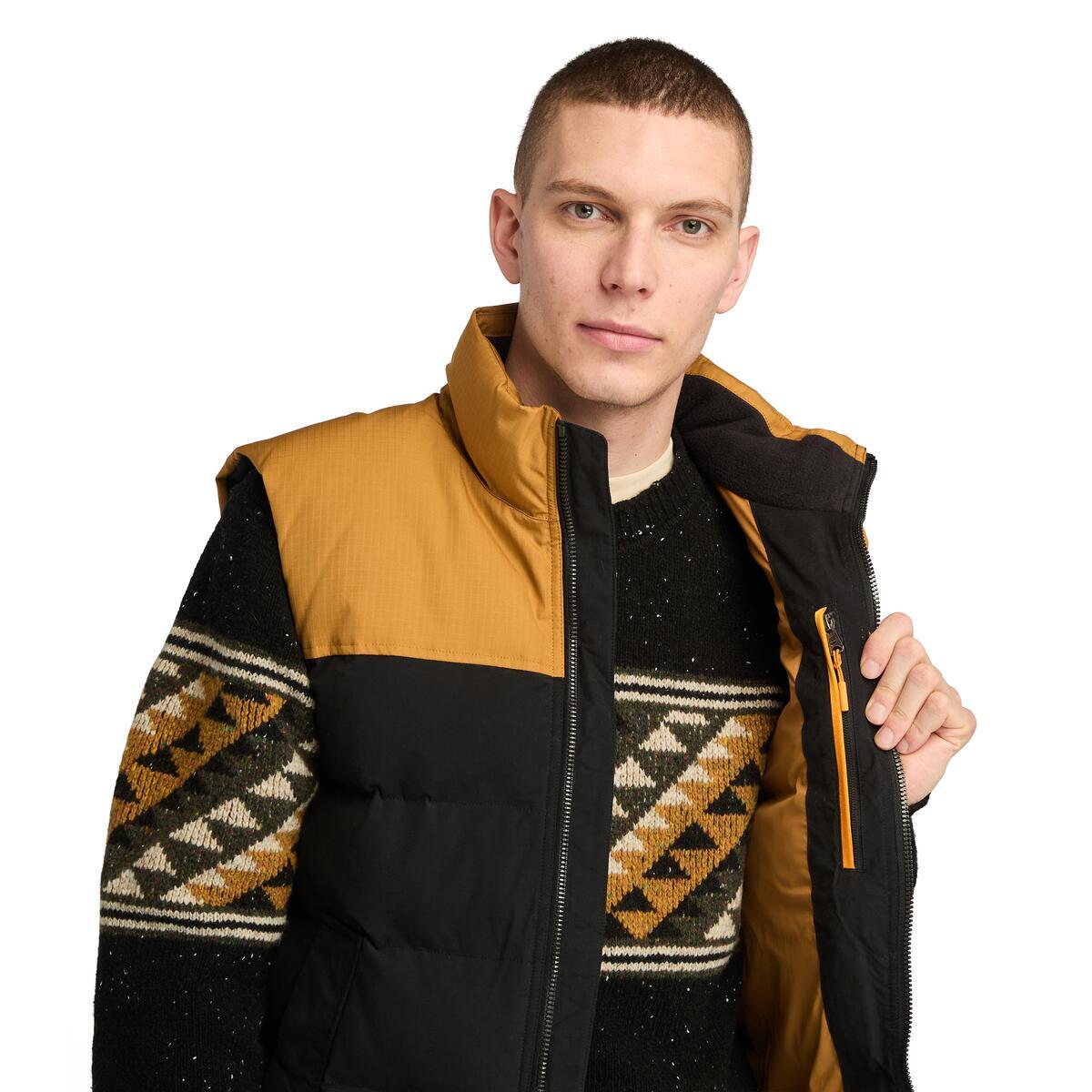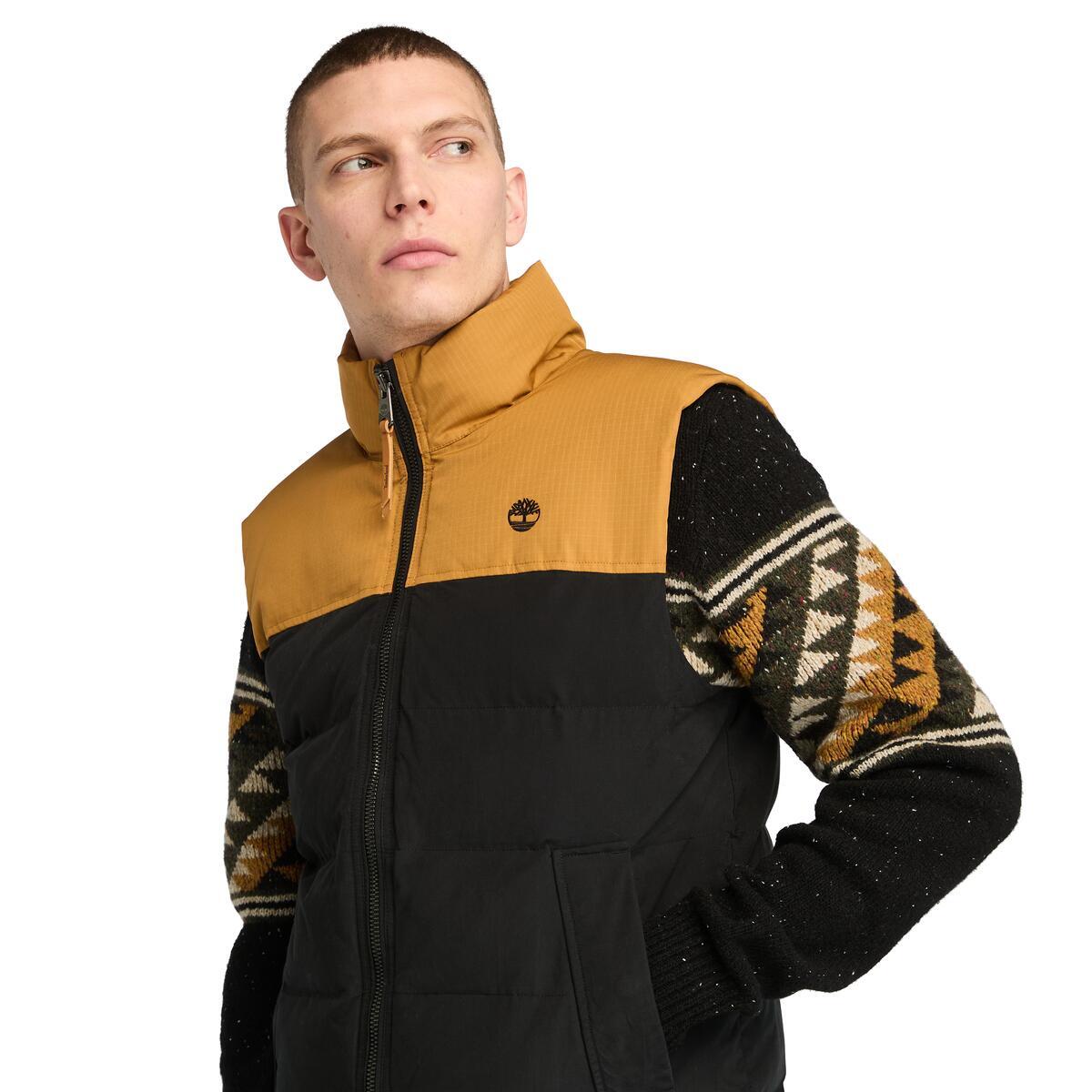 - This men's puffer vest is designed to help you look and feel great. It features a stylish blend of 72% cotton and 28% nylon, internal zipped pockets, water-repellent technology, and a warm, lined collar.