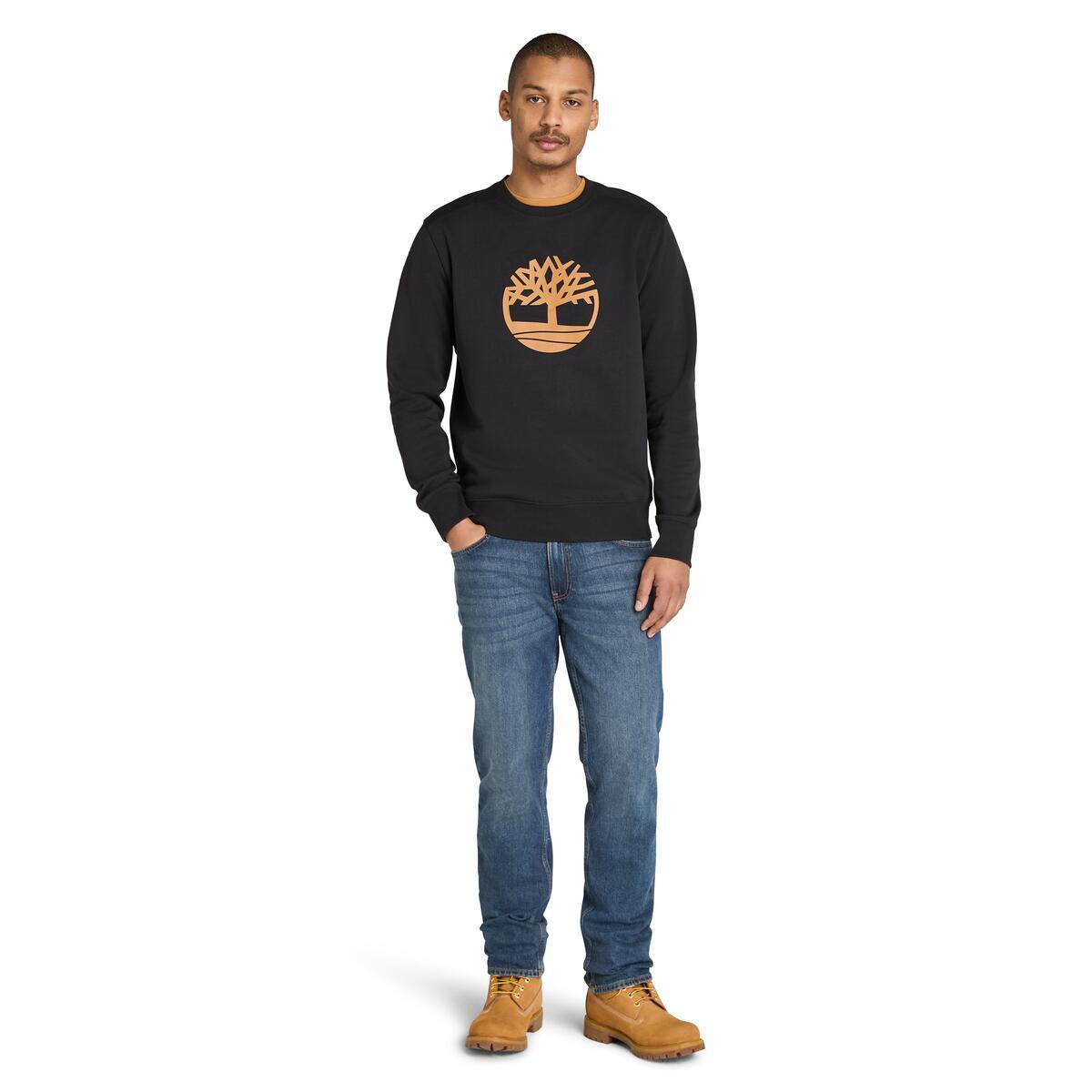 • Embrace a bold and comfortable look with the Timberland Tree Logo Sweatshirt for Men in black. This classic crewneck sweatshirt features a contrasting wheat-coloured tree logo on the chest for a touch of iconic Timberland style. Crafted from a cotton-blend fabric, it offers softness and warmth for everyday wear.