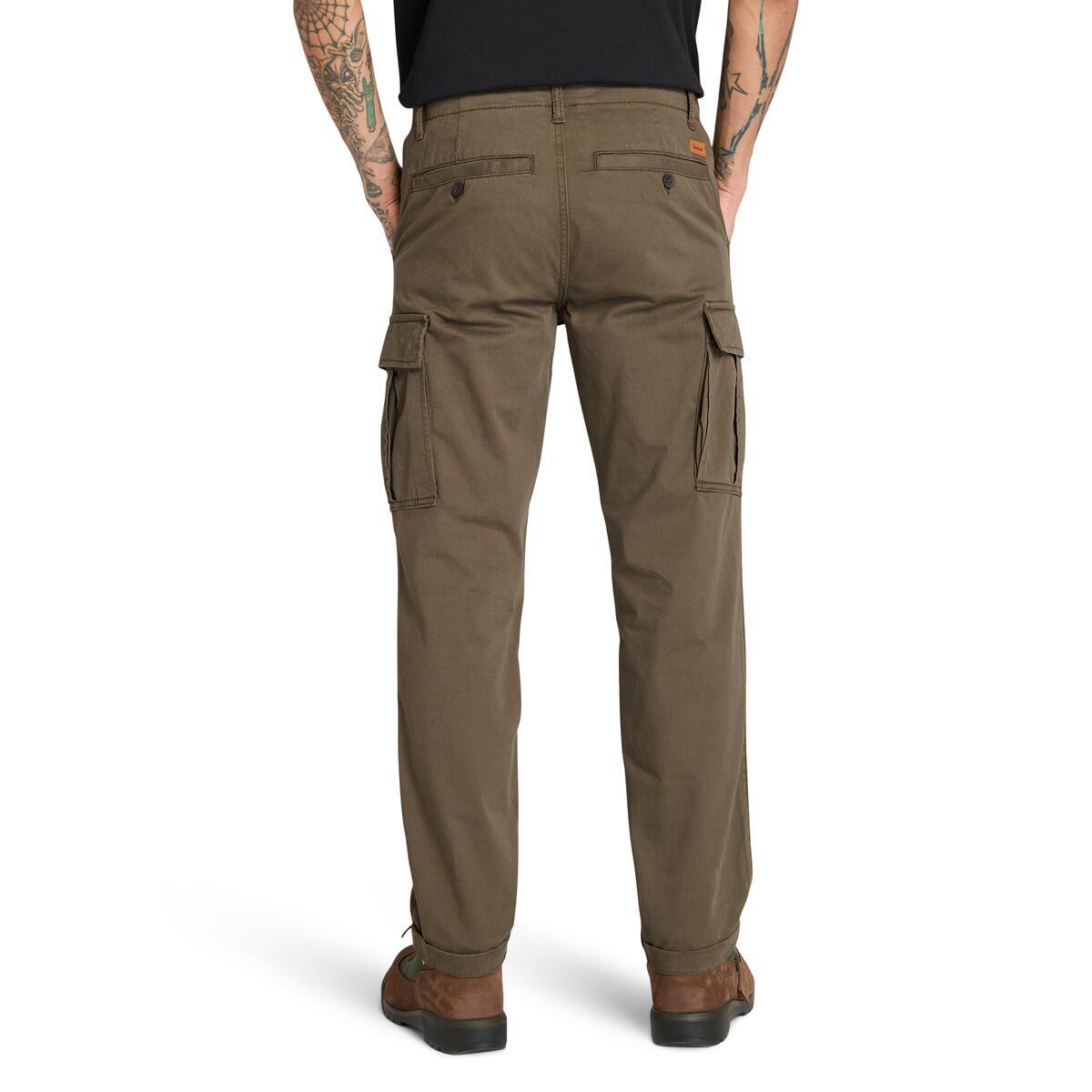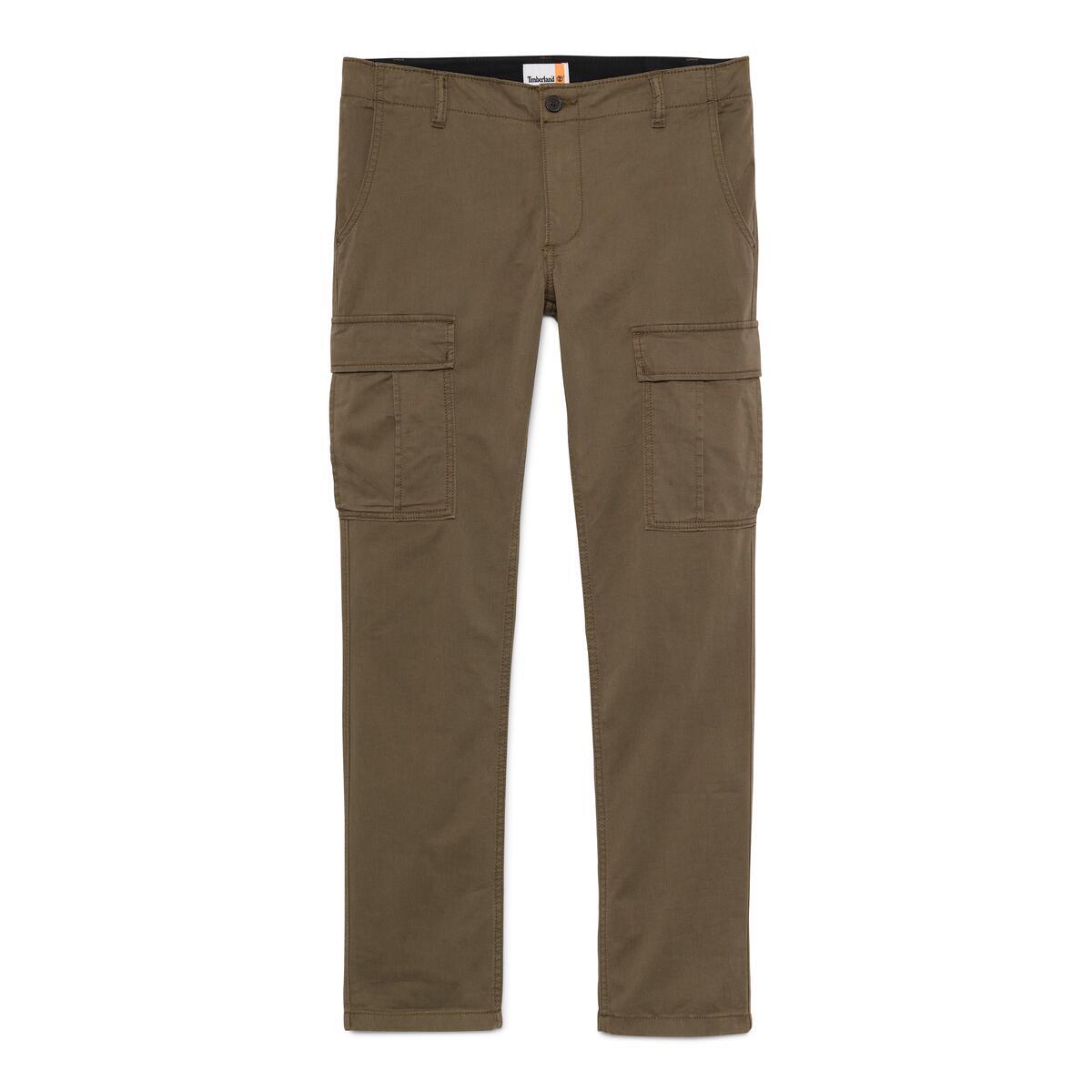 - Help embolden your workouts in the Timberland® Men's Brookline Twill Cargo Trouser made from plush 97% organically grown cotton, sourced from farms that do not use genetically modified seeds and avoid the use of synthetic pesticides/fertilizers, and 3% Elastane. With a straight fit and side and back pockets, plus a cargo pocket, there is plenty of room for small items. A button-and-fly closure helps make for carefree wear.