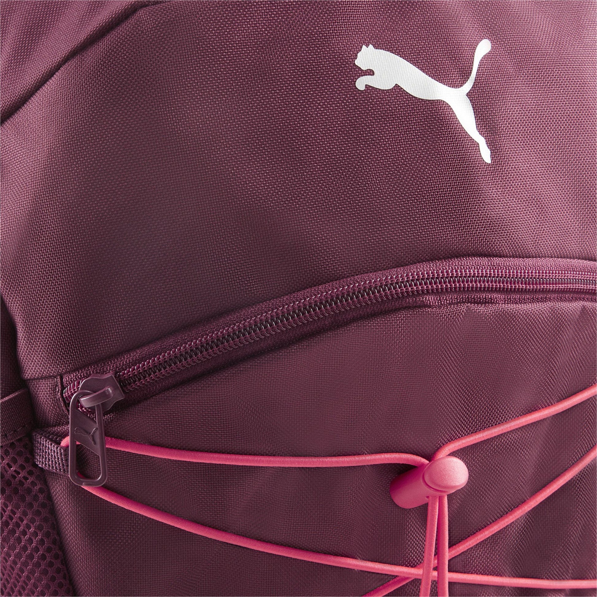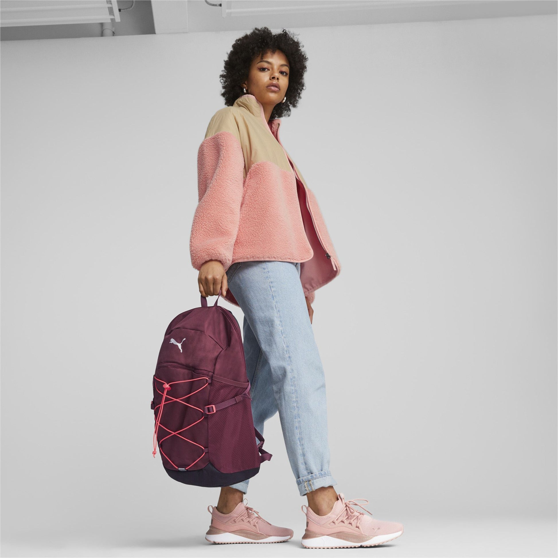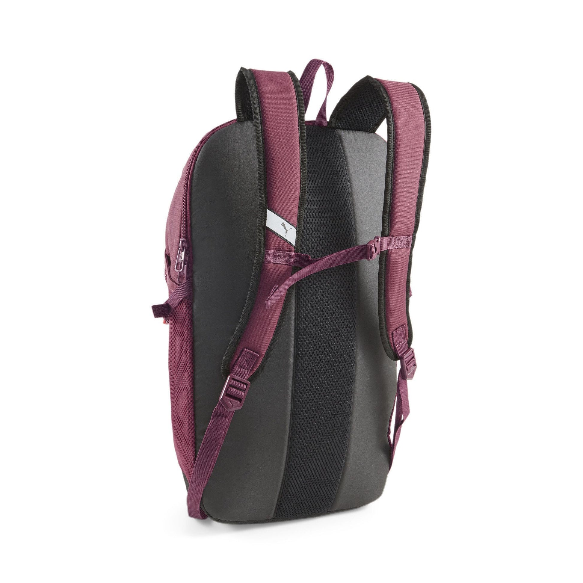 - A versatile and functional backpack designed for various activities, including city commuting, mountain trips, and gym sessions. It features a spacious main compartment with a two-way zip closure, a front zip pocket for valuables, and side mesh pockets for water bottles or snacks. The backpack is equipped with padded and adjustable shoulder straps, a reinforced back panel with mesh for ventilation, and a top carry handle. The PUMA logo and reflective details add to its urban appeal.