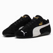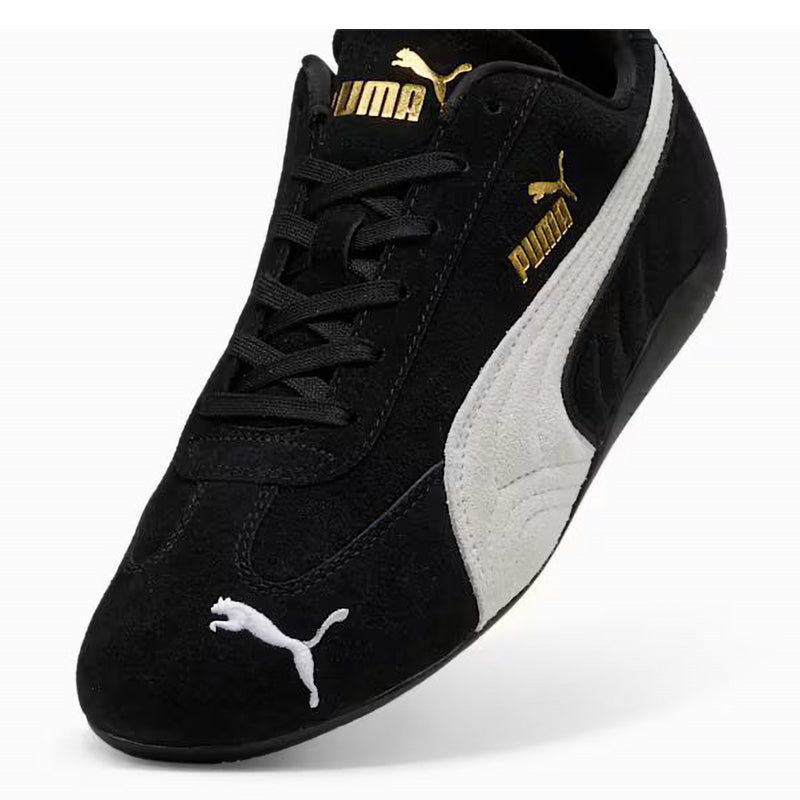- An icon of racing culture, the PUMA Speedcat has been synonymous with speed, precision, and unparalleled performance for over 25 years. It originated as a fireproof Formula 1® footwear style, but over the decades it found itself on a new circuit – transcending the tracks of Monaco for the streets of global fashion capitals. Wrapped in soft suede and premium leather, this silhouette is reissued in its original red and black colorways with a new PUMA Cat Logo at the front.