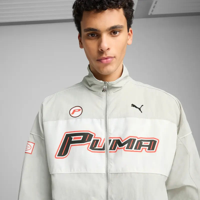 Step up your game with this PUMA track jacket. Featuring bold graphics, secure zipper pockets, and elastic cuffs, it's designed for those who love to make a statement. Feel the energy, embrace the vibe, and own your look.