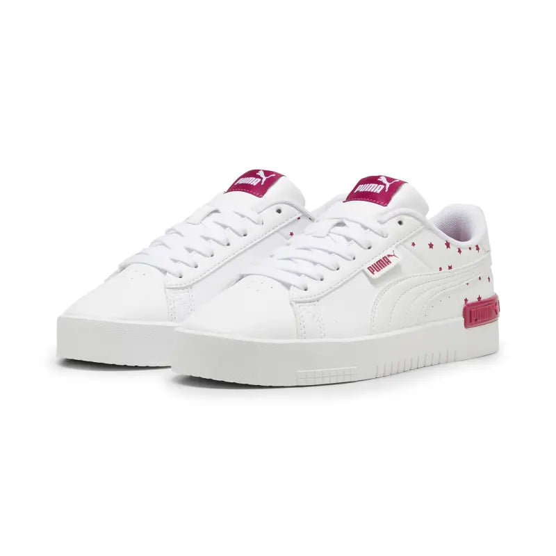 These PUMA tennis-inspired shoes are a modern take on a classic, designed with style and comfort in mind. They feature a slightly elevated platform sole for a retro touch and eye-catching star details on the sides.