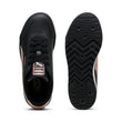 We're taking the Roma to new heights. The signature sleek look of our classic Roma sneaker is modernized in this version, with a new heightened outsole, a synthetic upper and metallic PUMA Formstrip.