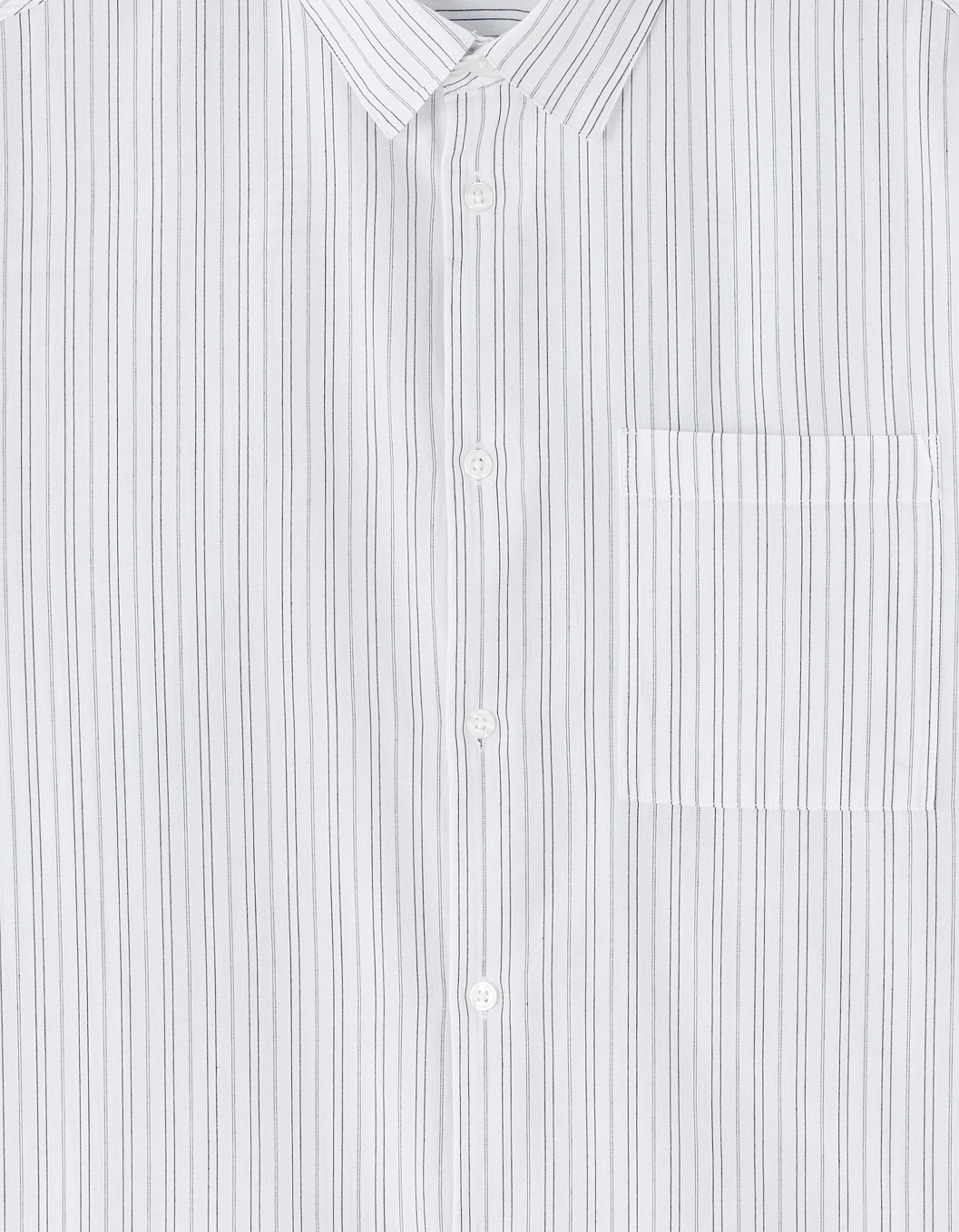 • An essential item in the men's wardrobe, discover this shirt that combines style and comfort.- White striped shirt- Loose fit- Made of poplin- Long sleeves- American or button-down collar- Soft touch- Striped print- 100% Cotton - To be worn with jeans or chinos.