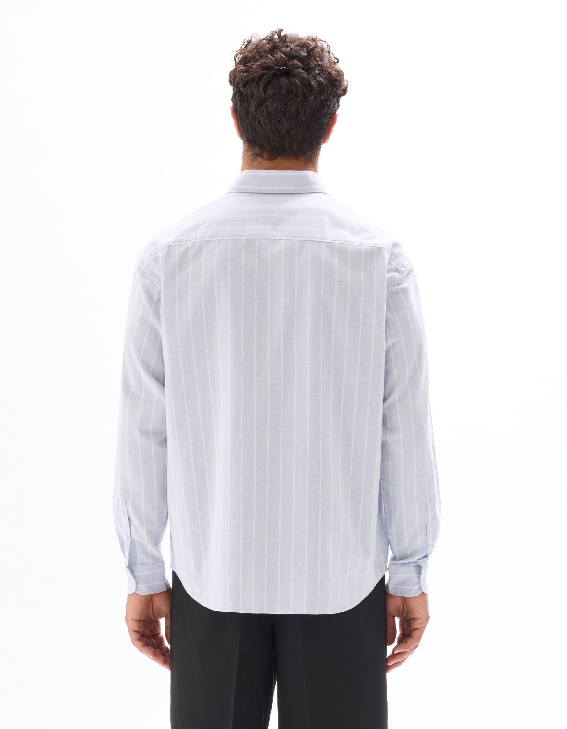 • For a confident casual style in the modern man, this shirt is an ideal choice.- Light blue striped shirt- Loose fit- Long sleeves- American or button-down collar- Soft touch- Made from blended oxford cotton- Patch pocket on the chest- To be paired with chinos or casual jeans.-