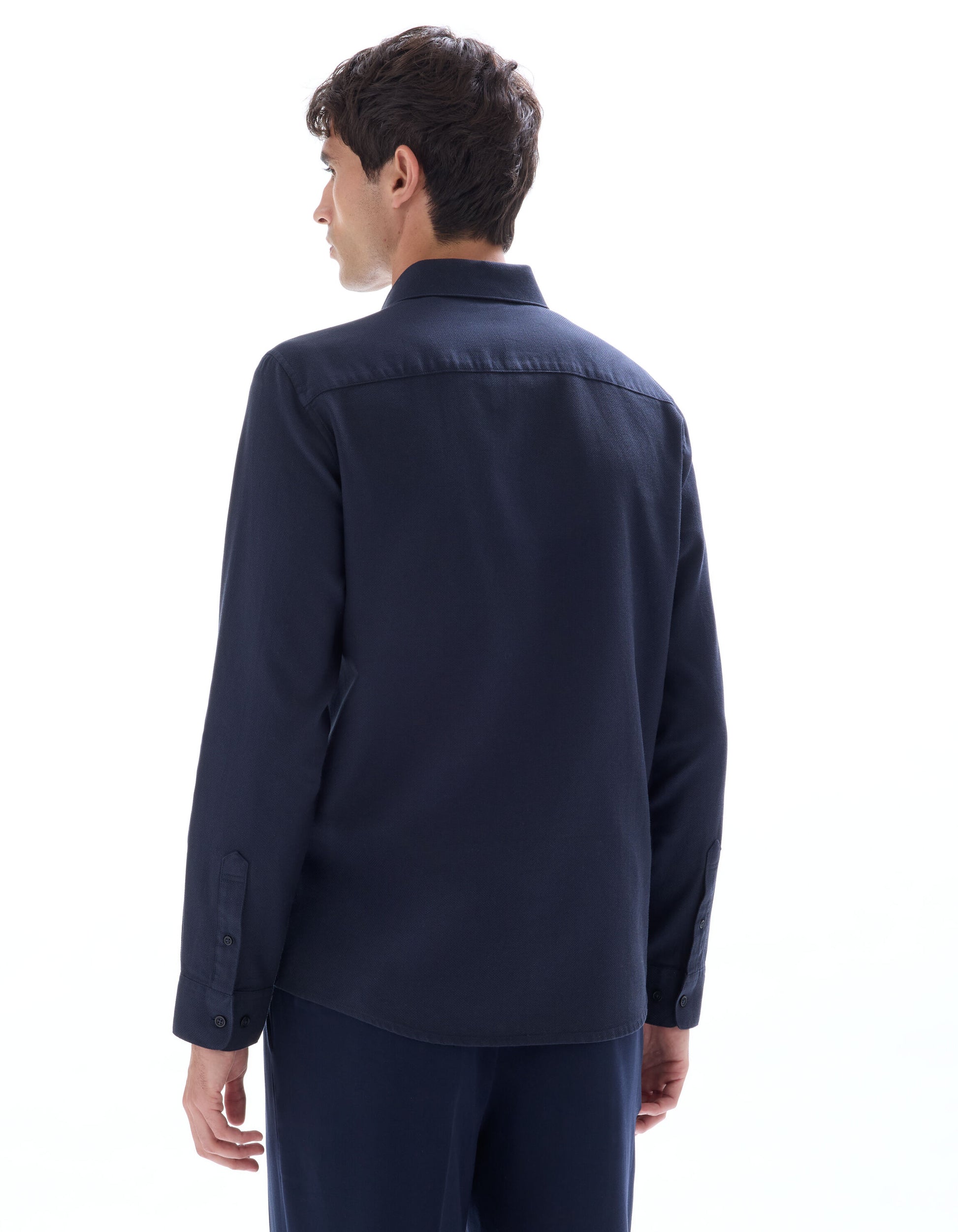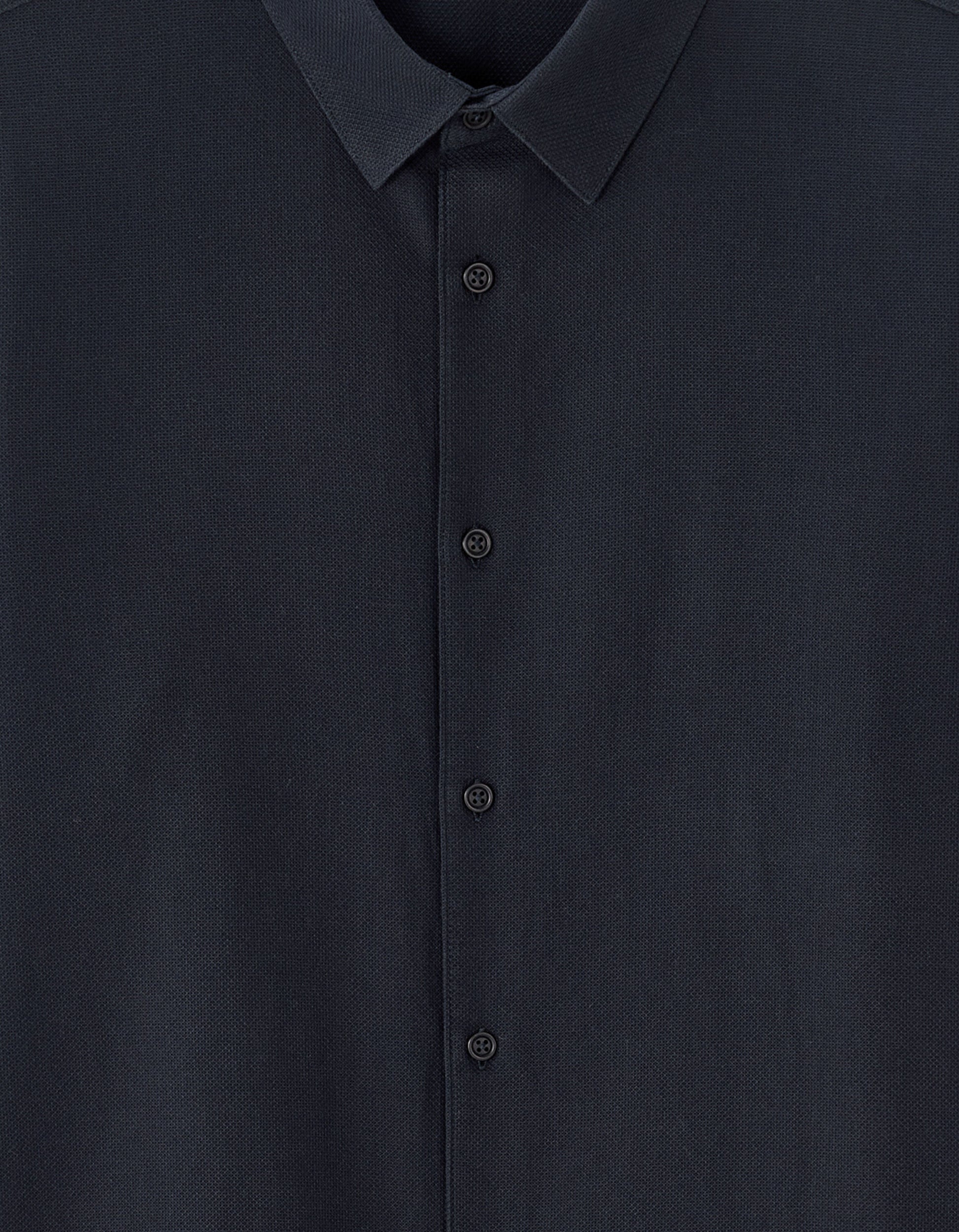 • For the man who cultivates a timeless style, this shirt combines ease and refinement.- Navy honeycomb shirt- Regular fit- Made of 100% cotton- Long sleeves- French collar- Soft touch- Complete your outfit with straight trousers.