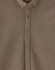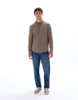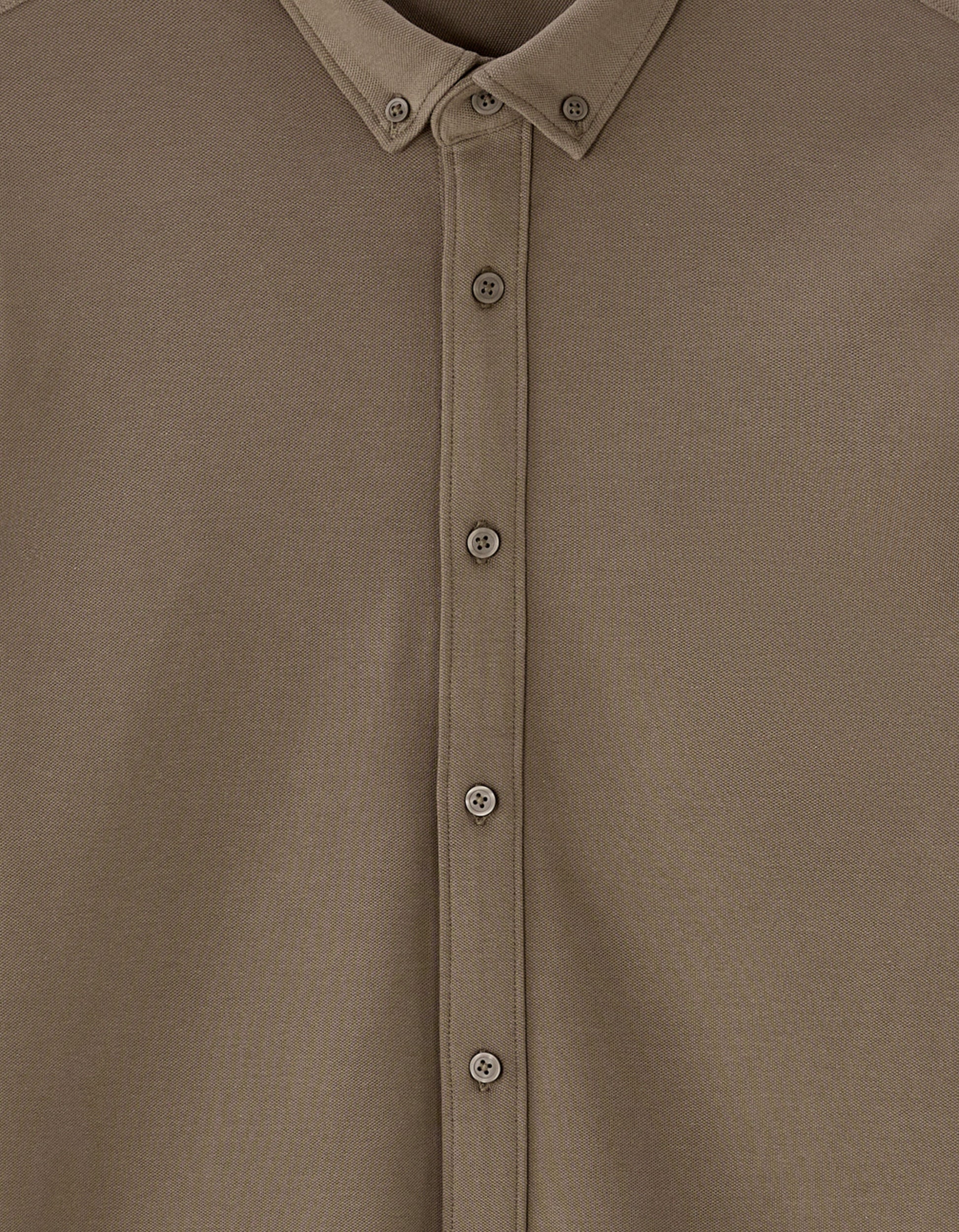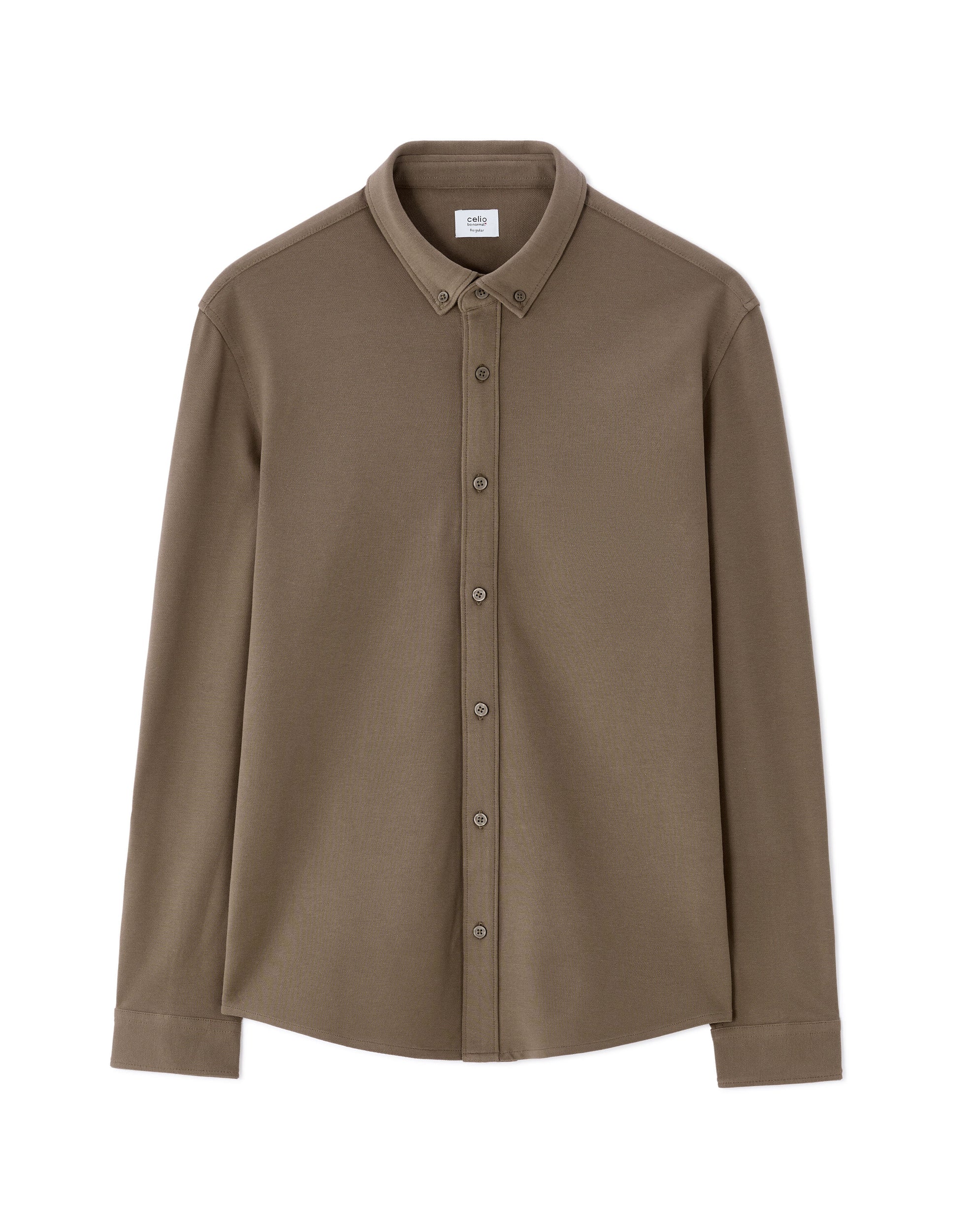 • Regular fit, durable fabric, and soft touch. For a checked look, but not too much. -For the modern man, a must-have shirt that combines comfort and elegance.- Solid brown shirt- Regular fit- Made from stretch piqué cotton- Long sleeves- American or button-down collar- Soft touch- Chest pocket- To be worn with chinos or jeans.