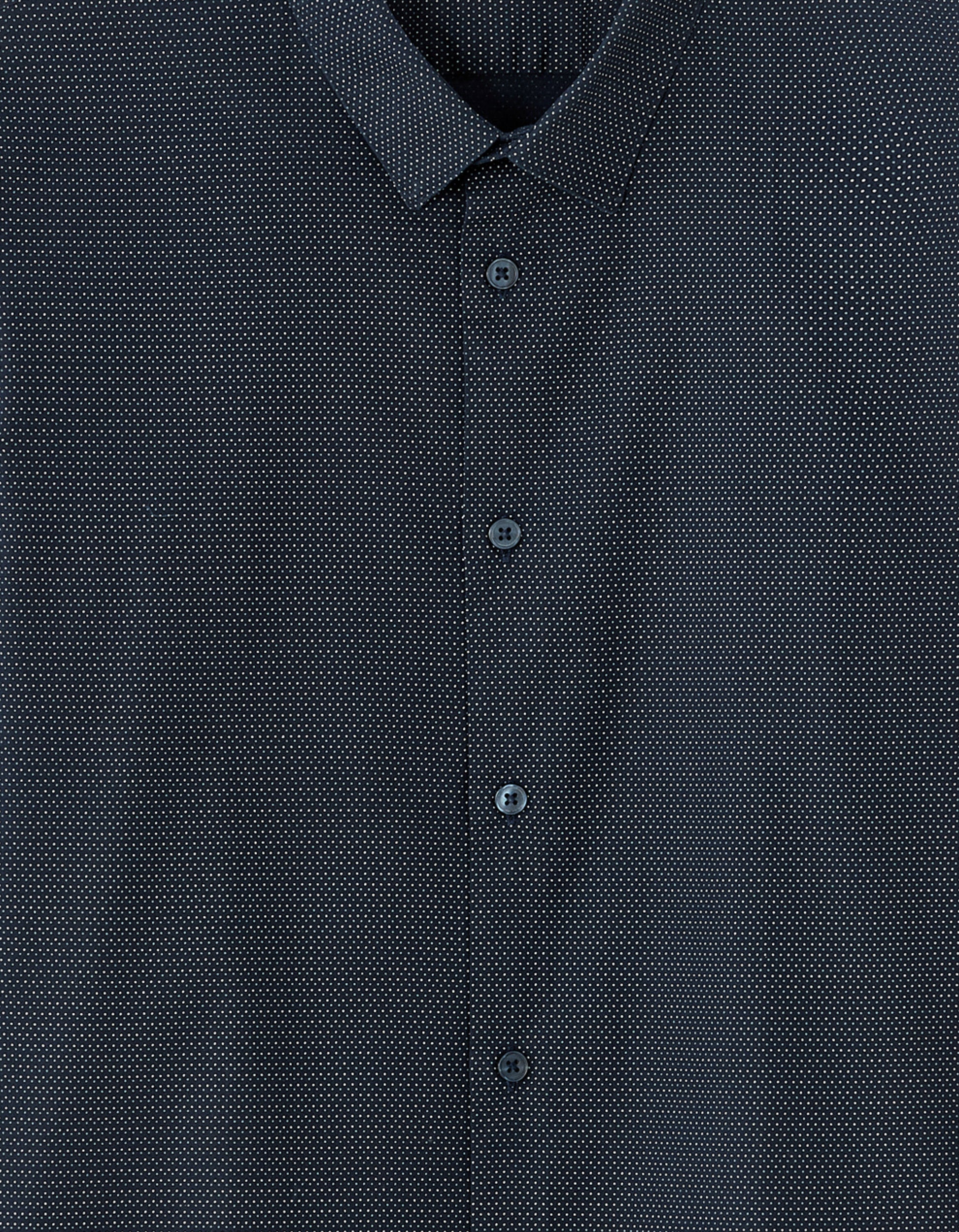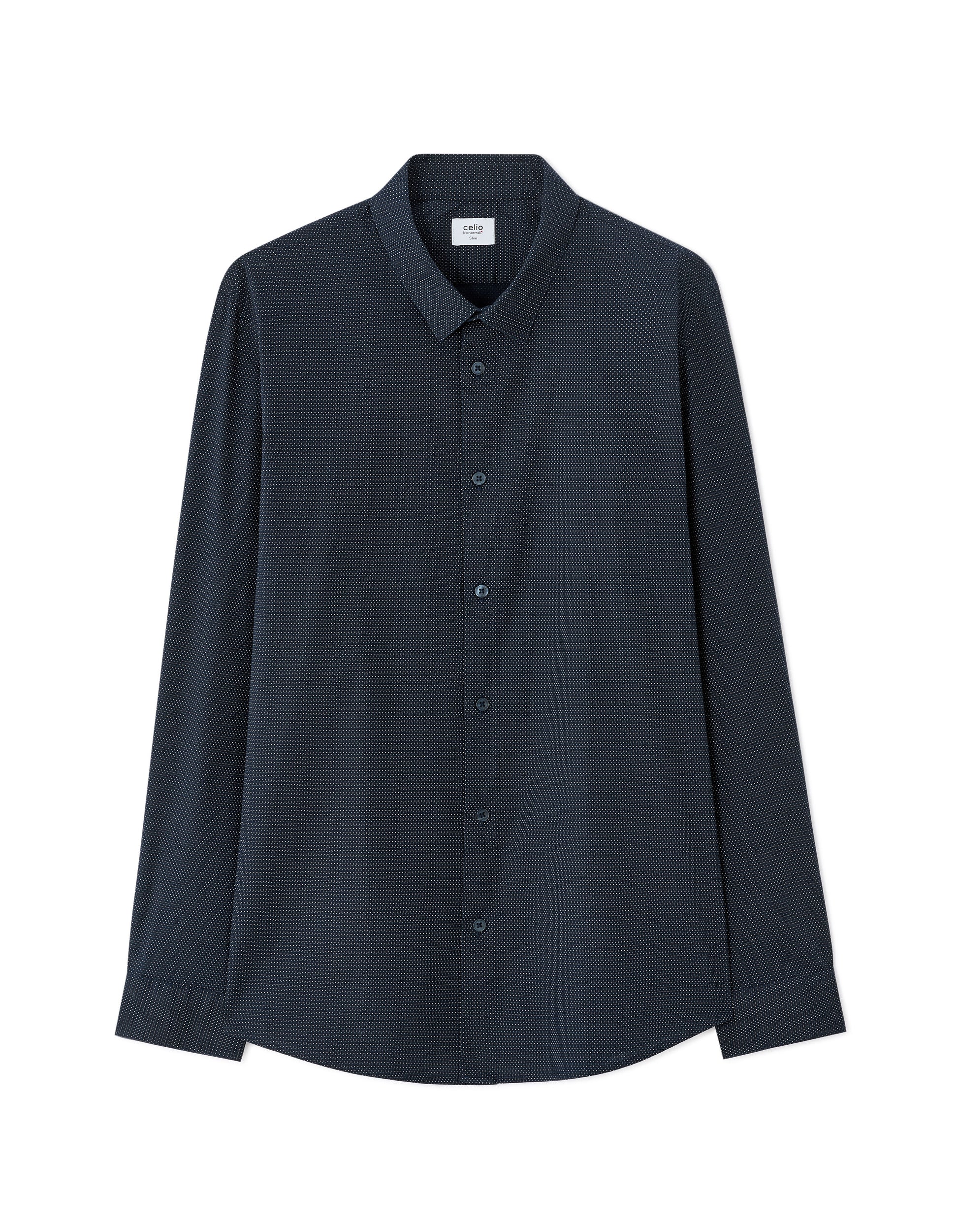 - The modern look of the man elevated by a shirt with original patterns. Perfect for a touch of sophistication. Soft. Elegant.- Printed navy shirt- Slim fit- Made from 100% cotton poplin- French collar- Soft touch- Fancy patterns- To be worn with chinos or dark jeans.