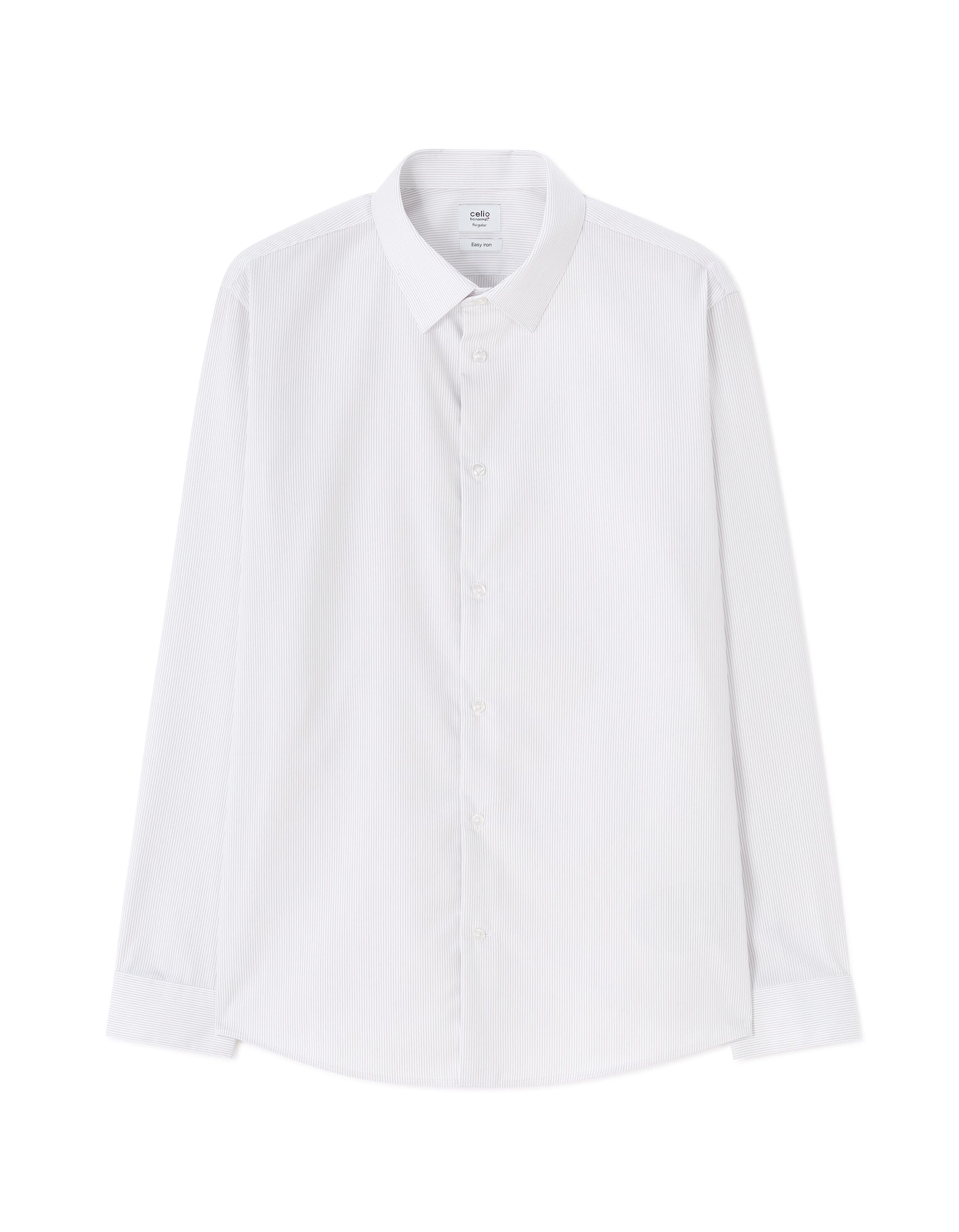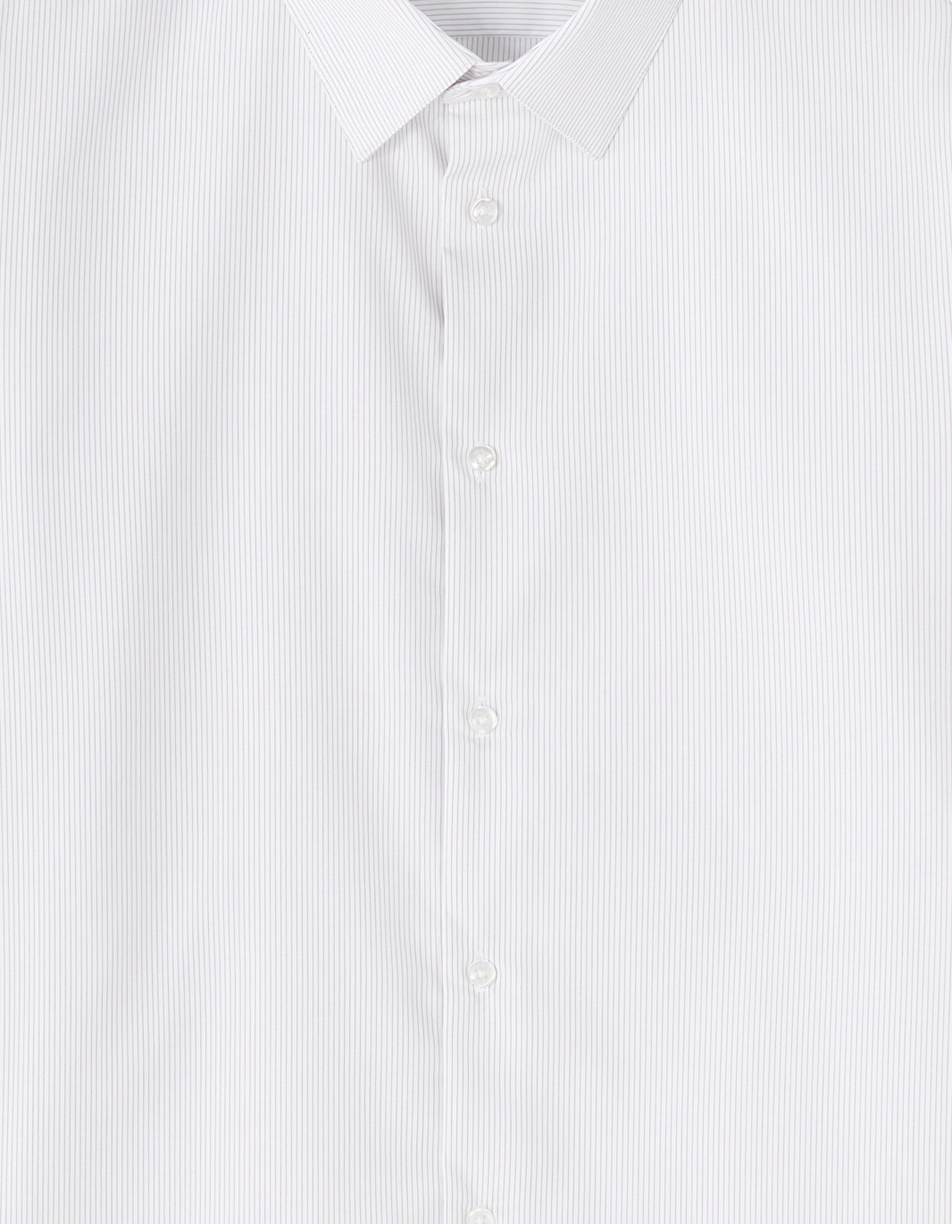 • Key element of the smart business style for men, this shirt offers a polished look.- Gray poplin shirt- Regular fit- Long sleeves- French collar- Soft touch- Thin stripes- 100% Cotton - To be paired with chinos or a blazer to complete the look.
