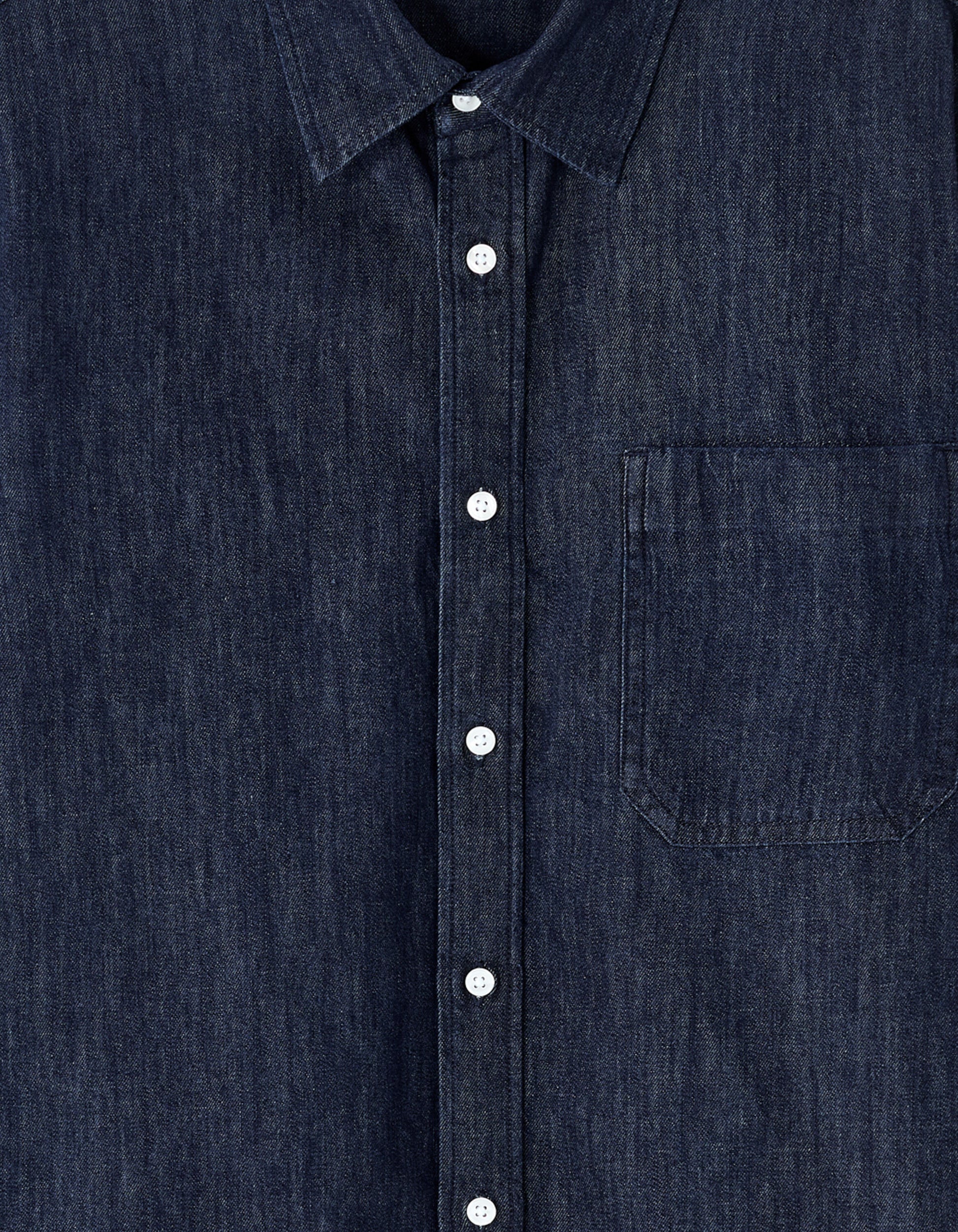 • Essential for the modern man, discover this casual shirt with a bold style.- Navy denim effect shirt- Regular fit- 100% Cotton- Long sleeves- French collar- Soft touch- Patch pocket on the chest-Pair it with jeans or chinos.