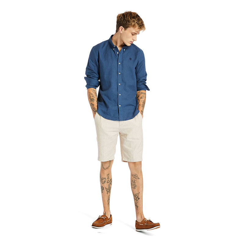 LOVELL LAKE Cotton/Linen Long Sleeve Shirt Dark Denim