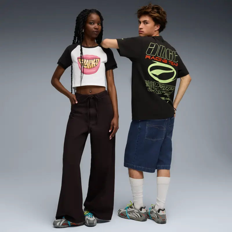 A$AP Rocky brings his signature aesthetic to a brand new capsule with PUMA, made for the concrete jungle. The collection fuses classic streetwear design with striking color pops, technical textures, and touches of motorsport DNA. Two of Rocky’s favored PUMA sneakers – Inhale and Mostro OG – return alongside a bold new style and new personal Flacko favorite: Mostro Gabbia, built with a removable cage. Gritty, bold, and unapologetically A$AP, this drop is geared to stand out.