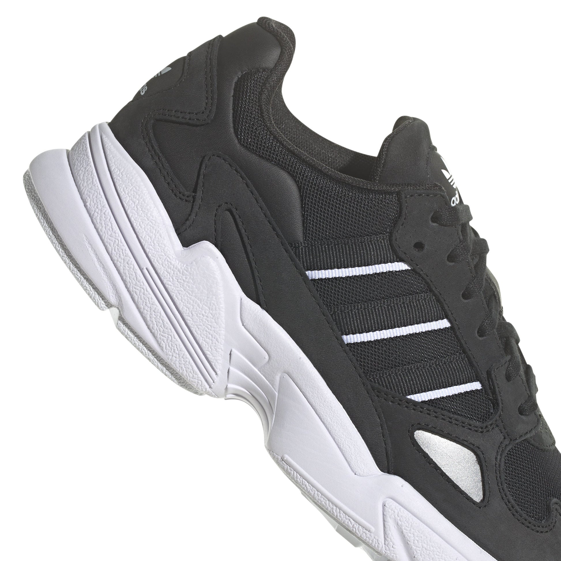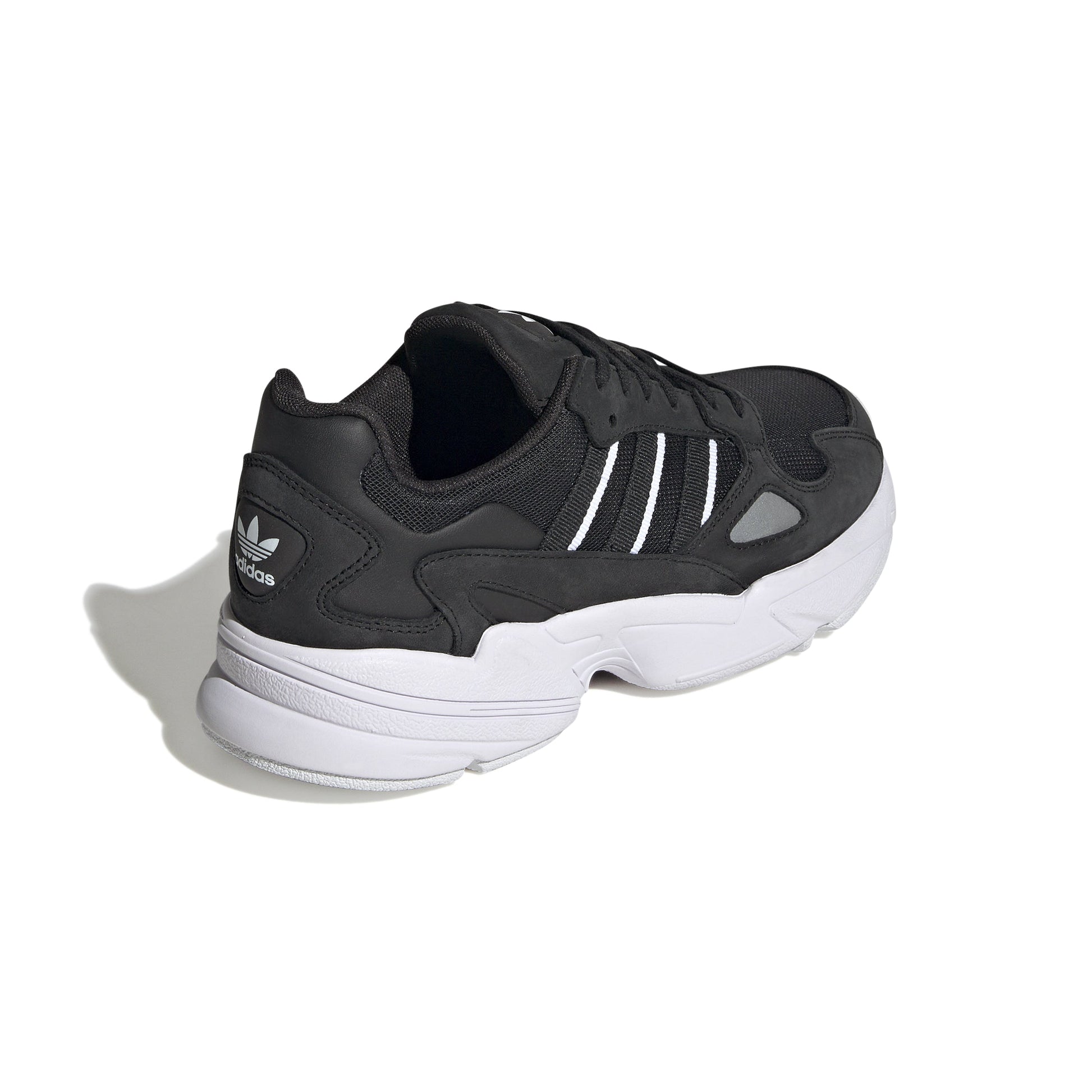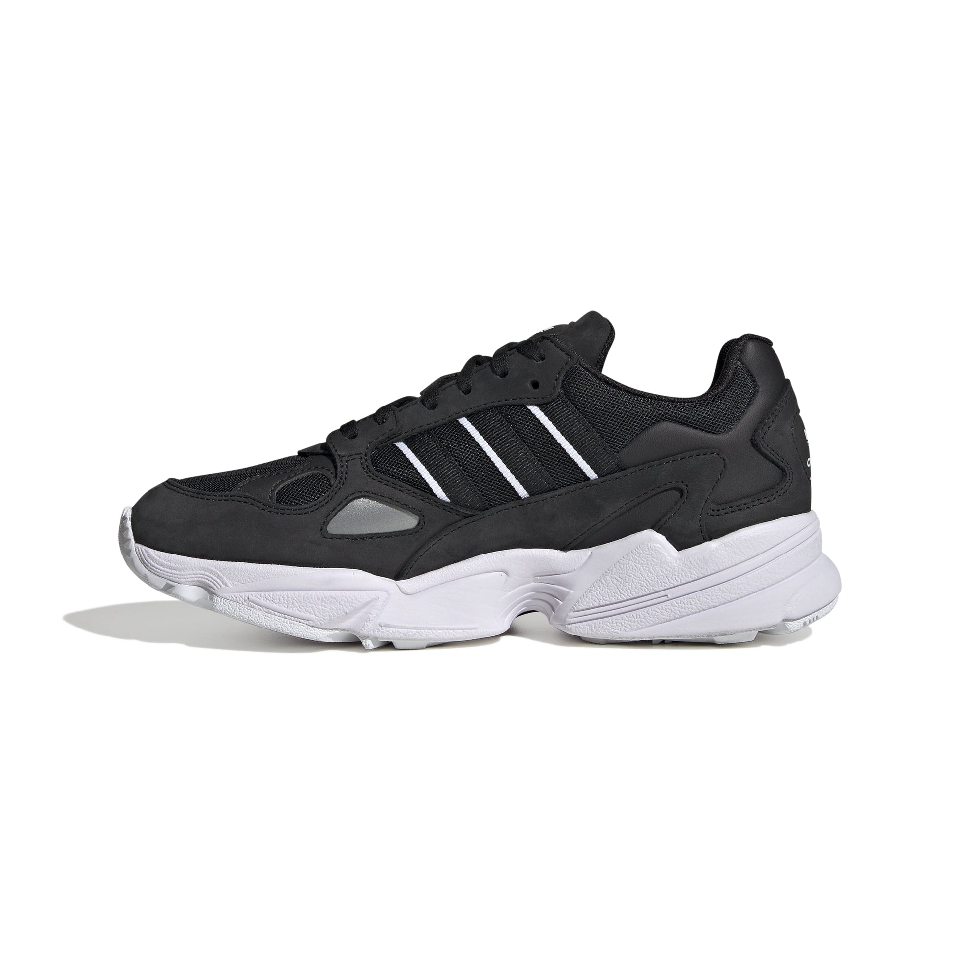 - Embrace The 90S With Adidas Falcon Shoes For Women. Inspired By The Chunky Expressive Trend, These Shoes Feature A Sporty Mesh Upper With Premium Synthetic Suede Overlays. The Regular Fit And Rubber Outsole Ensure Comfort, While The Lace Closure Offers A Secure Fit. These Street-Style Shoes Are Not Just A Nod To The Past But Also A Staple For Today'S Wardrobe.
