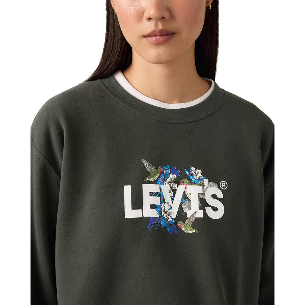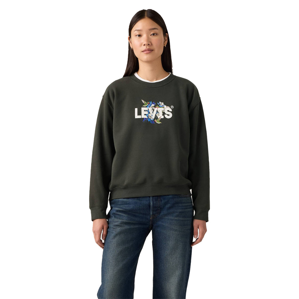 • The Levi's Women's Gr Everyday Crew Sweatshirt is the definition of comfort and casual style. Designed with a standard fit that hugs your silhouette perfectly, this crew neck, long-sleeved sweatshirt is a must-have for any wardrobe. Its 58% cotton and 42% polyester blend construction ensures softness and durability, while the bold graphic print on the chest adds a unique and authentic Levi's touch. Ideal for a relaxed weekend look, for cozying up at home, or pairing with your favorite jeans for a casual outing. Wear the quality and timeless style that only Levi's can offer.