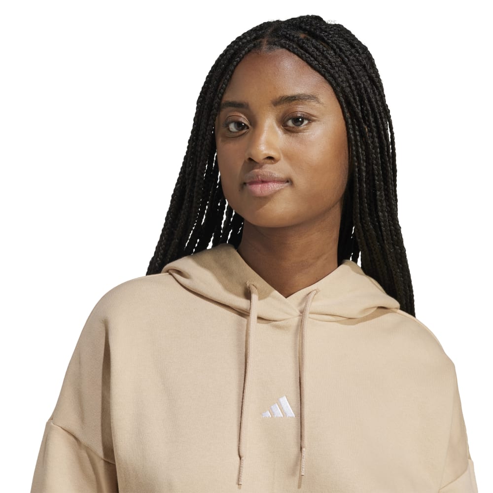 - Introducing the Essentials Small Logo Feel Cozy Hoodie for women. Crafted from a sustainable blend of 70% Better Cotton and 30% recycled Polyethylene Terephthalate, this regular fit, hooded sweatshirt is a versatile staple for any wardrobe. With a large sportswear logo and cozy 240g fleece, it's designed for comfort and style, making it a perfect match for your favourite fashion items.