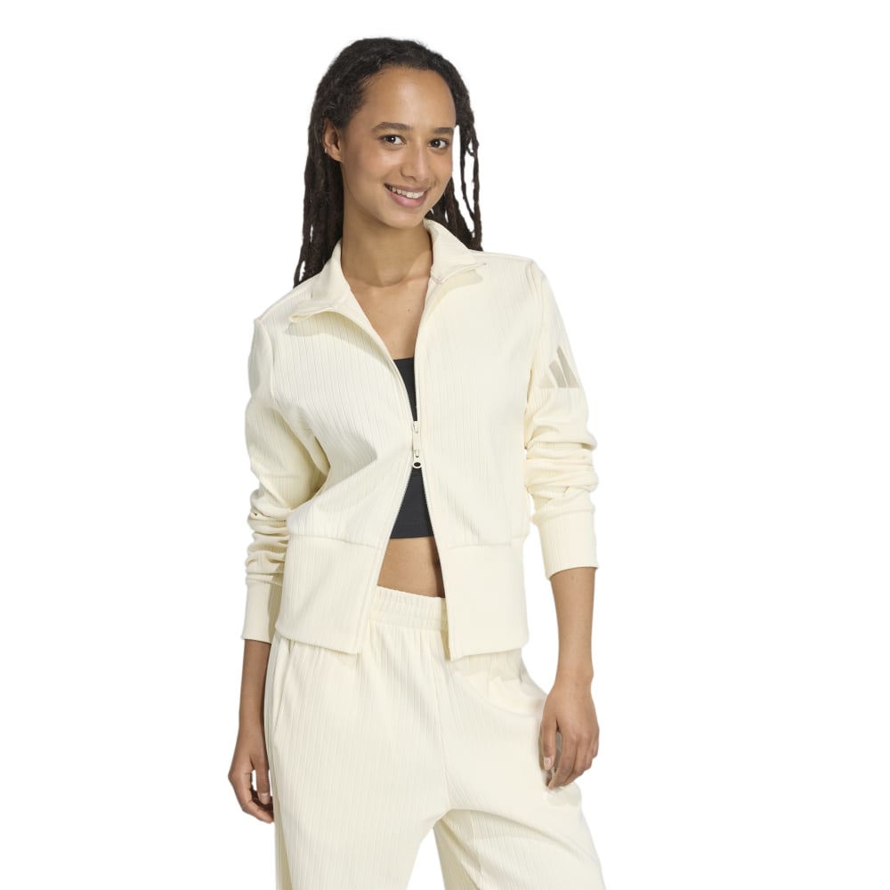 • Introducing the All SZN Winterized Full Zip track top, designed for women who seek comfort and style in their everyday wear. Made from 93% cotton and 7% elastane, this knit track top offers a regular fit with a stand-up collar, set-in sleeves with underarm gussets, and a slit at the hip for added mobility. The tonal embroidered sportswear logo and ALL SZN lettering add a subtle touch of elegance, while the 500g rib fabric ensures durability and warmth. Perfect for leisure, to and from sports, this versatile piece is your go-to for every season.
