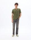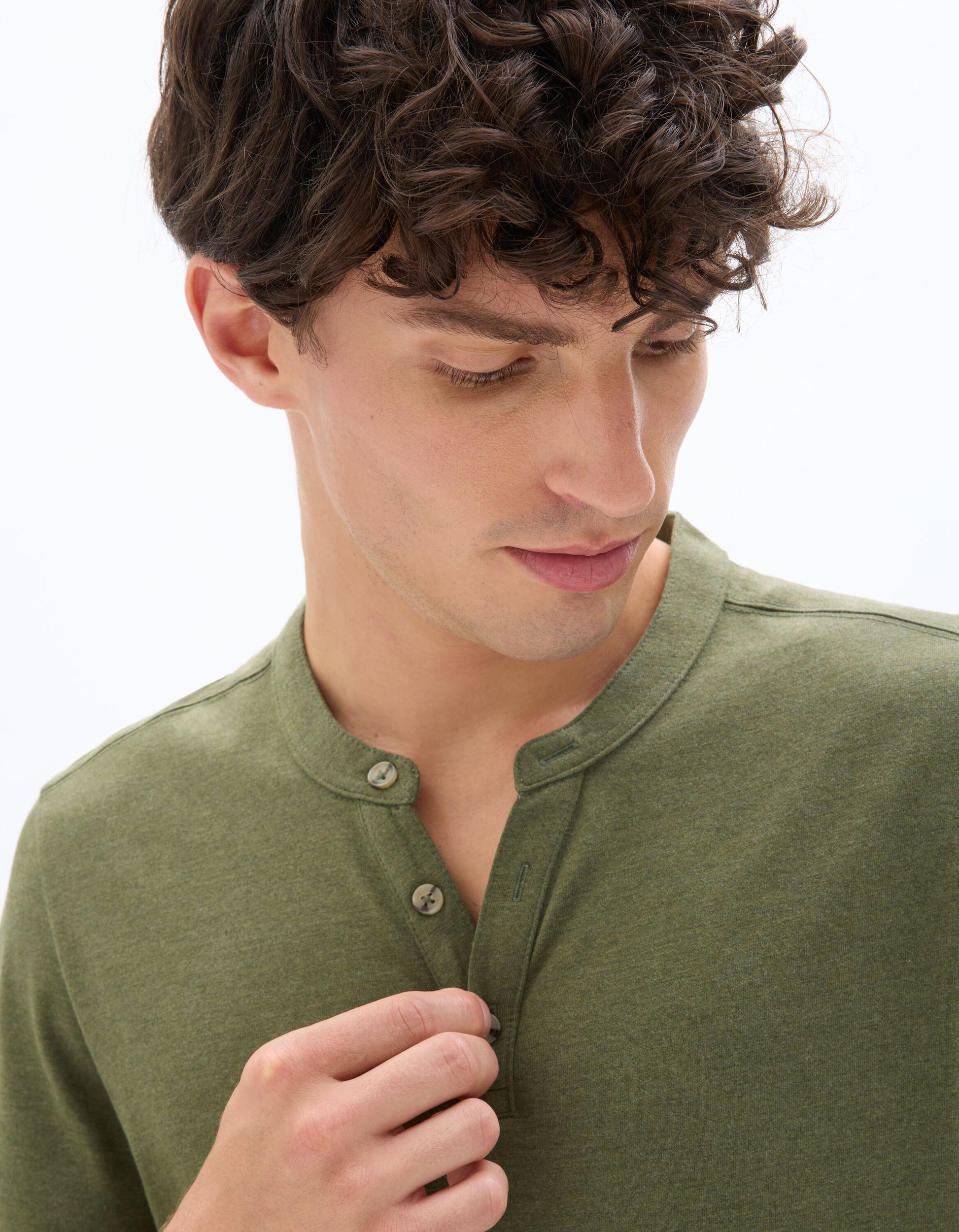 - Discover comfort and style with this men's henley t-shirt, perfect for all seasons.- Khaki henley t-shirt- Straight fit- Blended cotton- Short sleeves- Tunisian collar- Weight: 180 g/m²- Pair this t-shirt with cargo pants or shorts for a casual look.- Available in multiple colors to vary styles.-Wash at 40°C, no bleach, no dry cleaning, medium iron, no tumble dry.