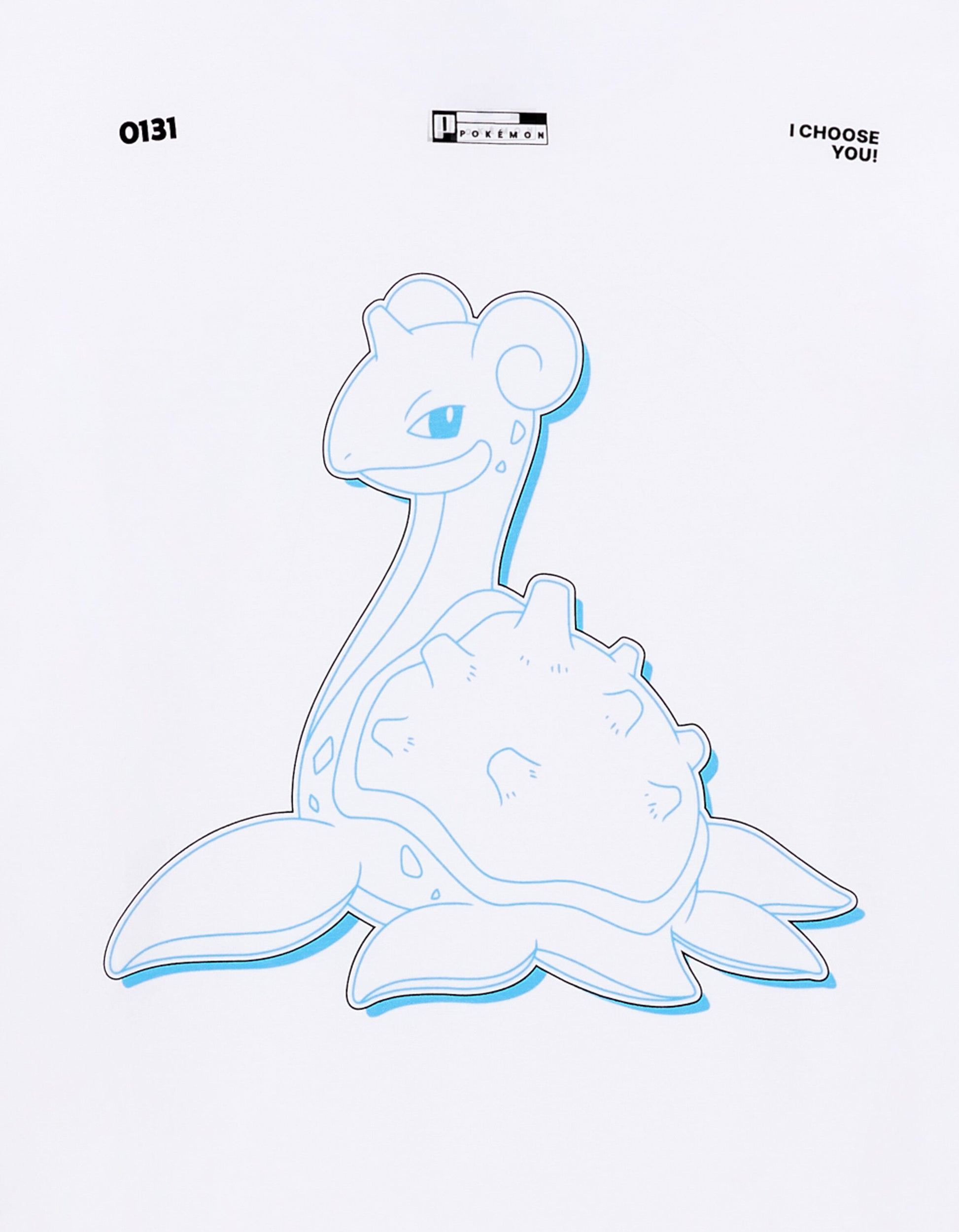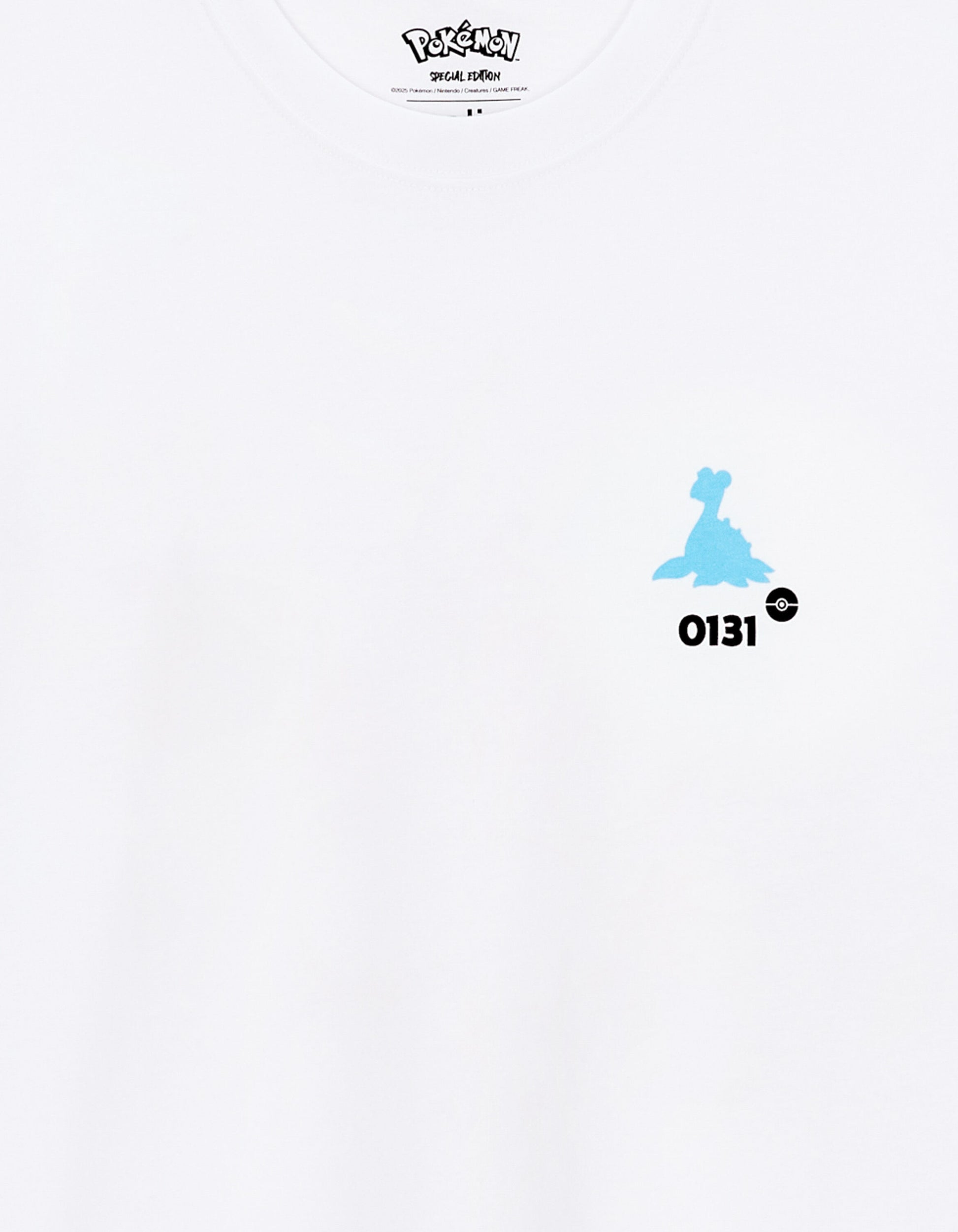 - All the Pokémon discovered in the Kanto region are featured on 151 t-shirts, in a collection that will delight fans of Pikachu and Charizard, as well as those of Geodude and Snorlax. - Find your favorite Pokémon! - Express your passion with a unique style. - - White t-shirt - - Boxy fit - - Short sleeves - - Round neck - - Printed on the front on the chest and on the back all over with Lapras in the center and its number 0131 - - Pair this t-shirt with one of our jeans or trousers for a complete look - Unisex t-shirts: - - Women's size: If you prefer a tighter fit, take one size smaller than your usual size. For a loose or oversized style, select your usual size.