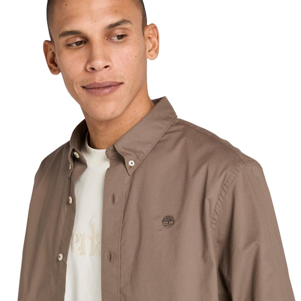 - This long-sleeve poplin shirt helps offer classic style with everyday comfort. Made from 100% cotton with natural stretch, it features a button-down collar, embroidered Timberland tree logo, and a regular fit.