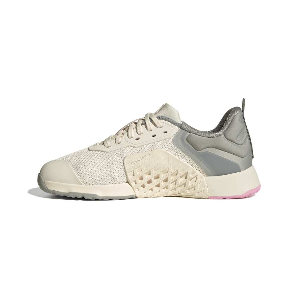 • Meet the Dropset 3 W, a training shoe designed for women who aim to become stronger and healthier. Crafted with a wide fit for strength training, these shoes are made from textile and rubber materials, ensuring durability and comfort. The dual-density midsole is stiffer in the heel and softer in the forefoot, providing stability and support during workouts. The Heat.Rdy technology keeps you cool while Traxion offers optimal traction. Made in part with recycled materials, these shoes not only enhance performance but also contribute to sustainability. Lace up and achieve your goals with Dropset 3 W.