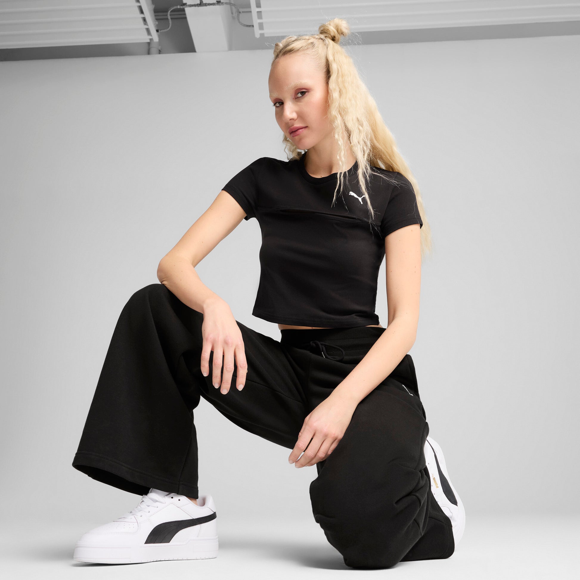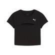 Step up your style game with this cut-out baby tee. Featuring a chic chest cut-out and subtle embroidery, it's the perfect addition to your outfit. Feel confident and effortlessly cool with PUMA's fresh take on casual wear.