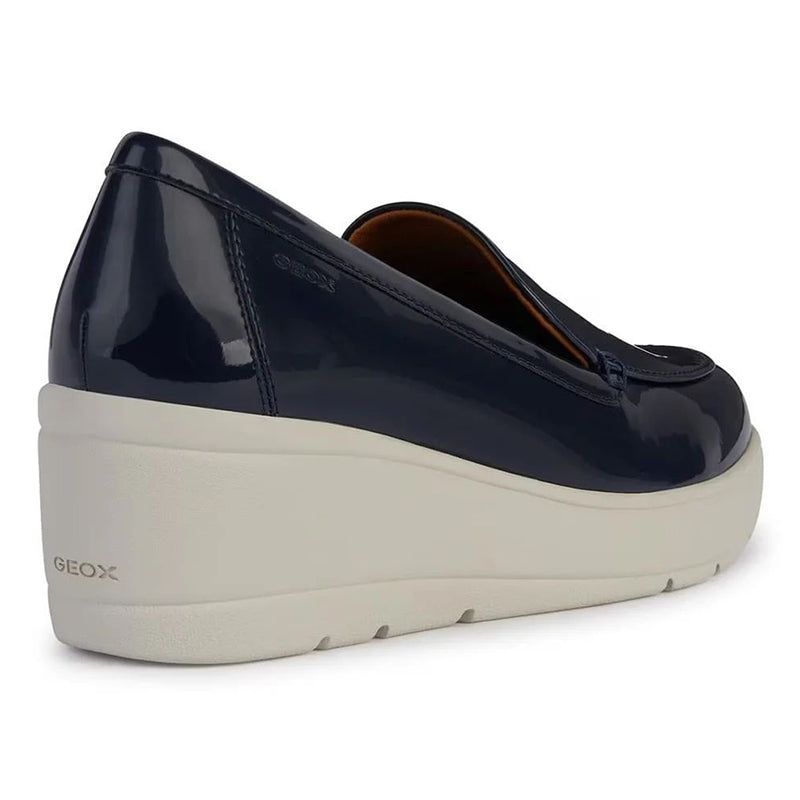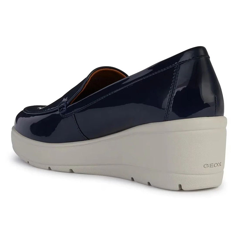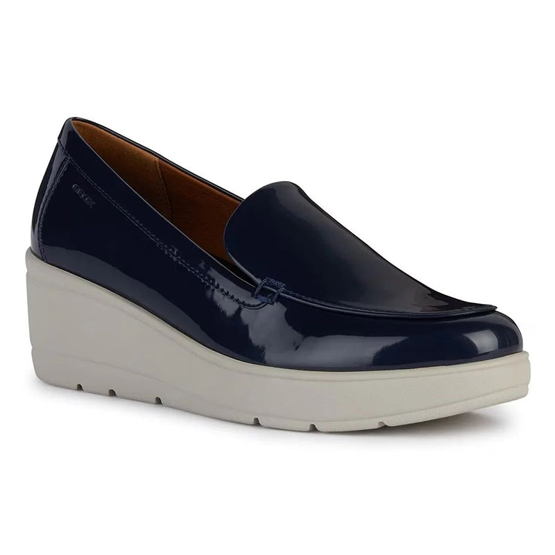 - Discover The Perfect Balance Between Style And Comfort With The Geox Ilde Moccasins. In A Classic Navy Blue Hue And With A Unique Patent Leather-Like Finish, These Shoes Exude A Vibrant Look That Will Enrich Any Ensemble. The Innovative Composition Of Materials Not Only Ensures Durability But Also Adds An Extraordinary Shine, Perfect For The Dynamic Woman Who Strives For Urban Elegance.