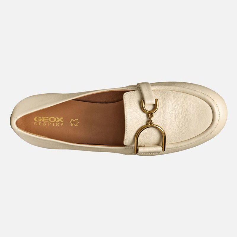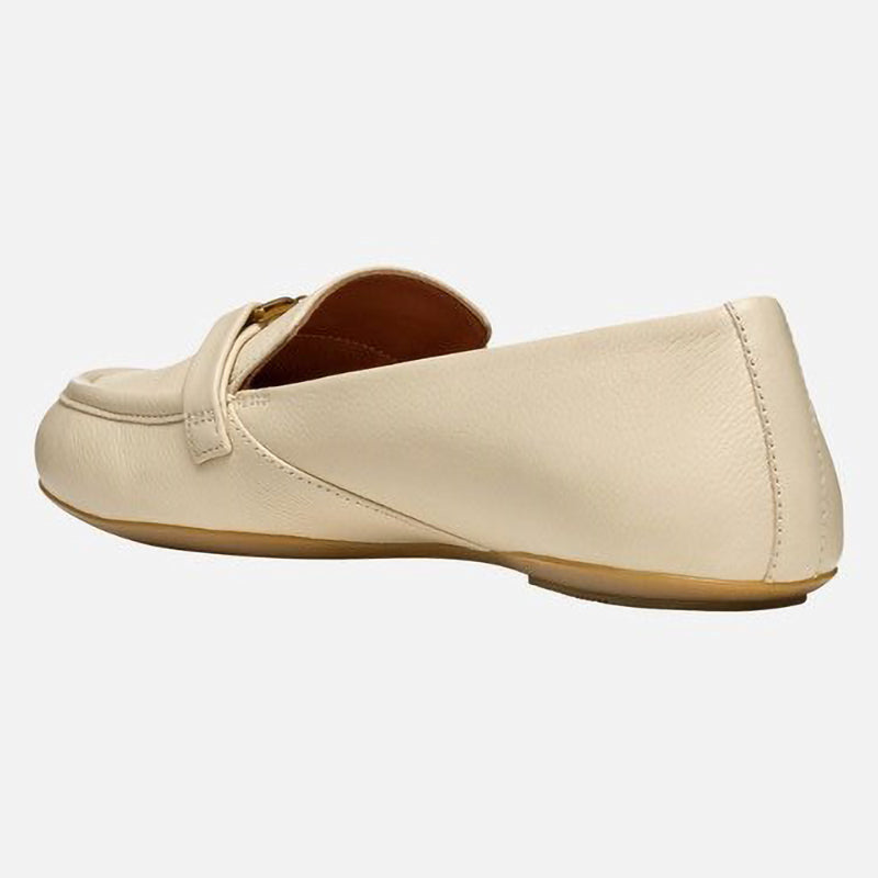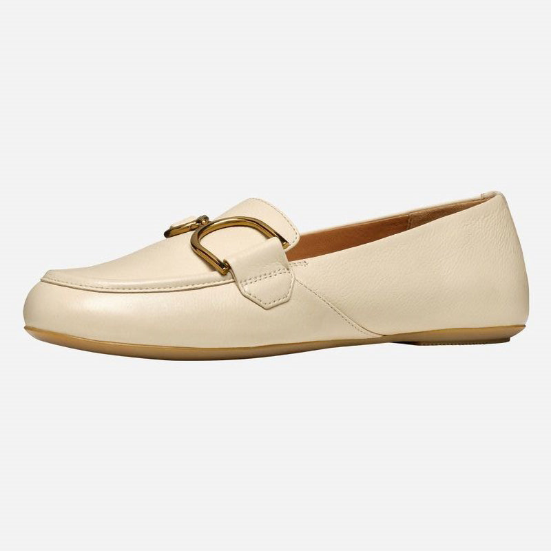 - City-perfect loafer for women ensuring comfort and breathability throughout the day. This sophisticated version features a tumbled-leather upper in light beige with a day-to-day chic aesthetic and classic feel. Embellished with a refined metal detail, Palmaria will enhance everyday dressing and lift business attire with a special touch.