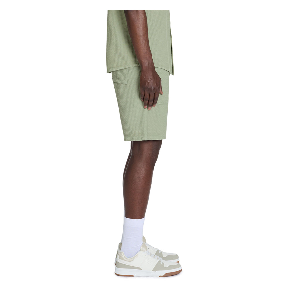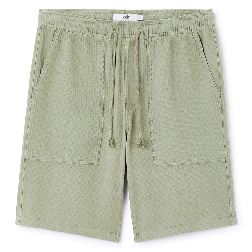 - Casual Men'S Style At Your Fingertips! These Long Green Waffle Bermuda Shorts Are Perfect For A Trendy Yet Comfortable Look.