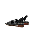 - A low stacked heel adds extra charm to these versatile sling back sandals.