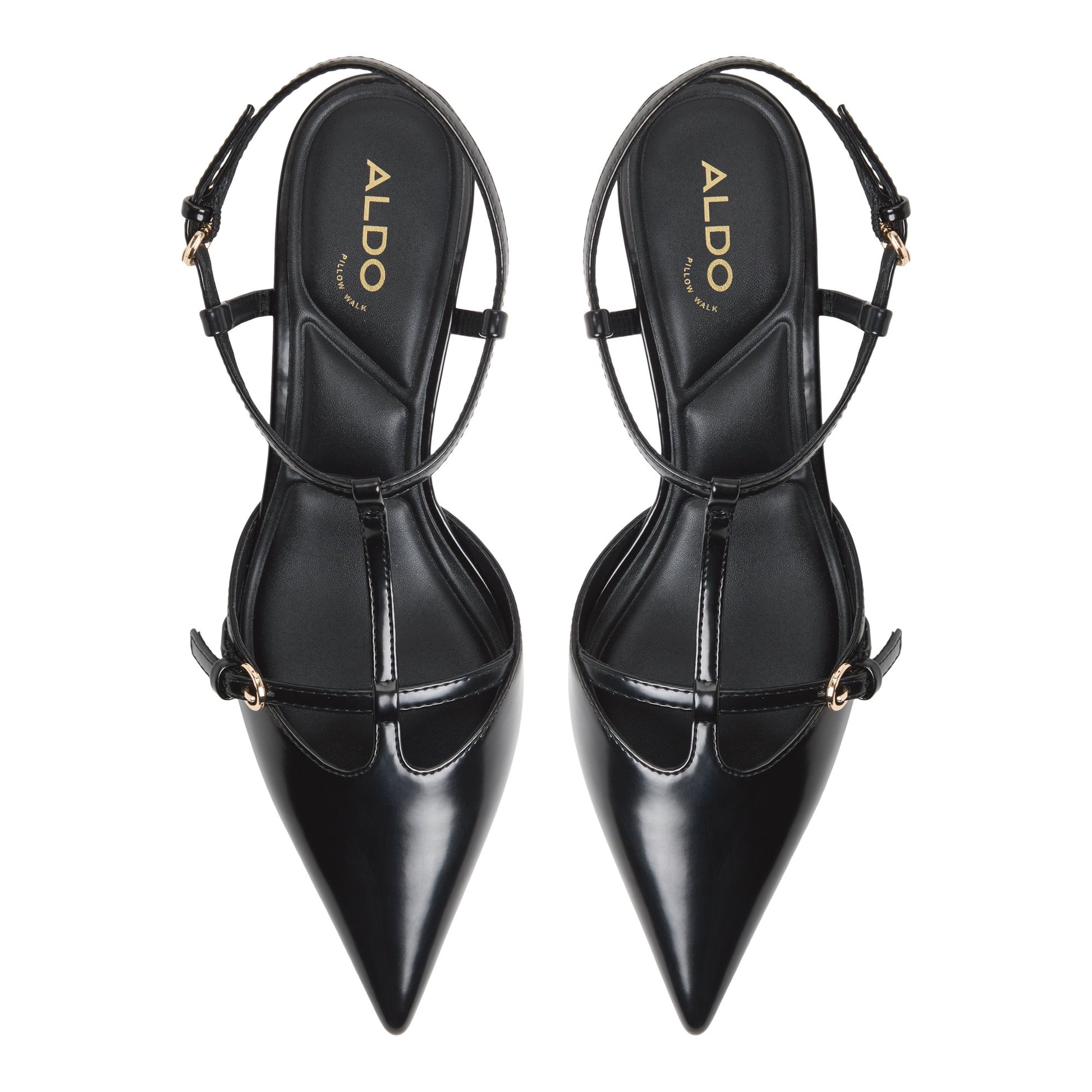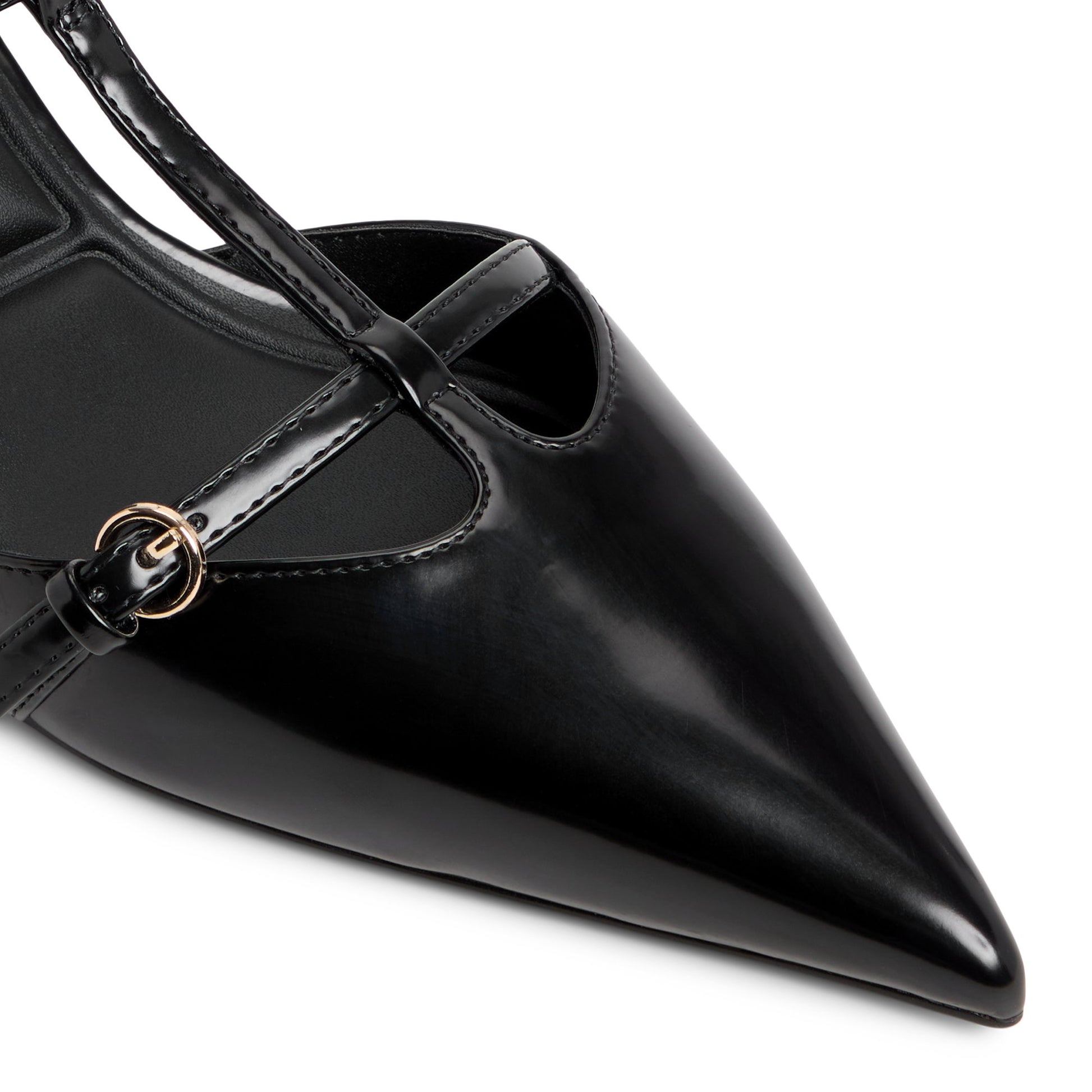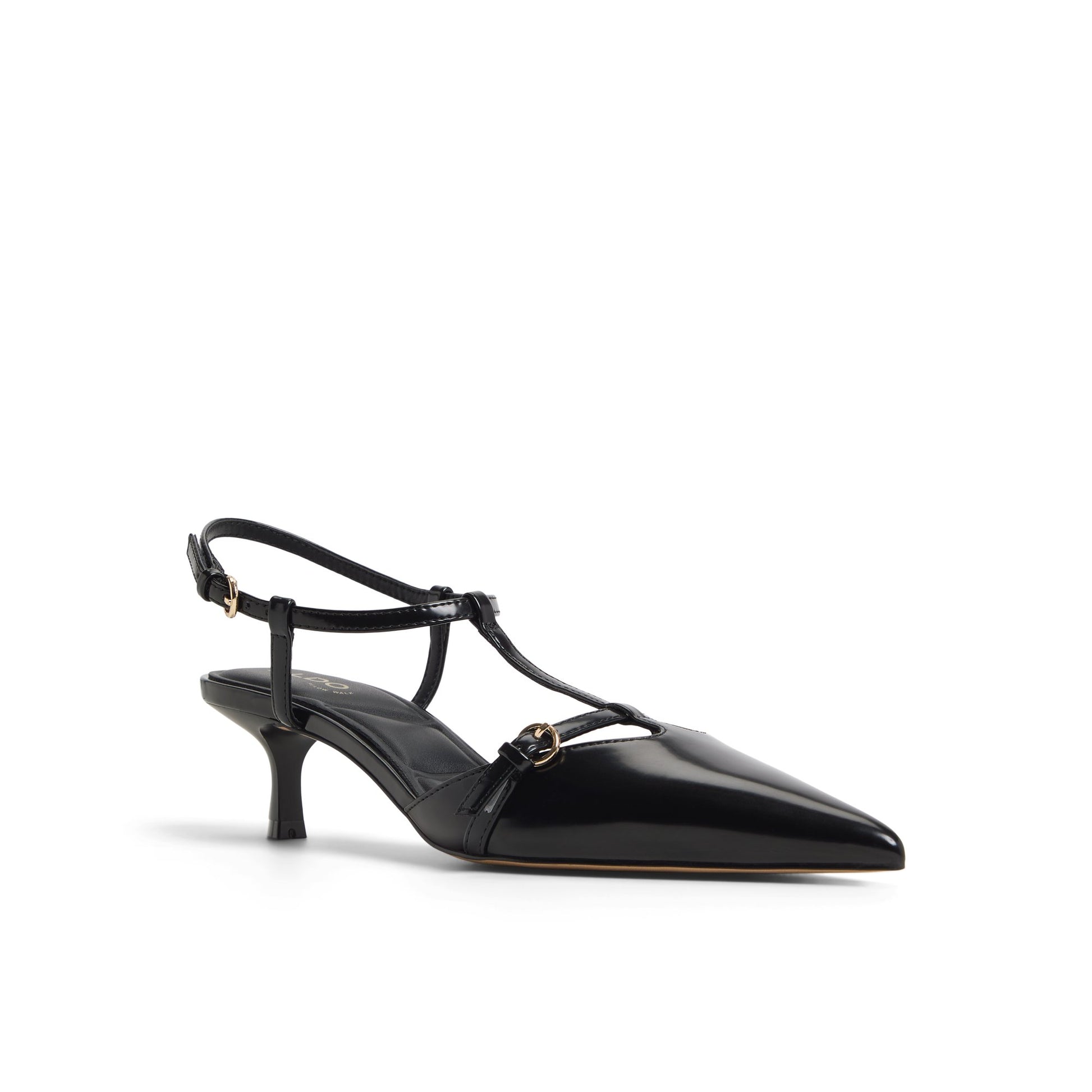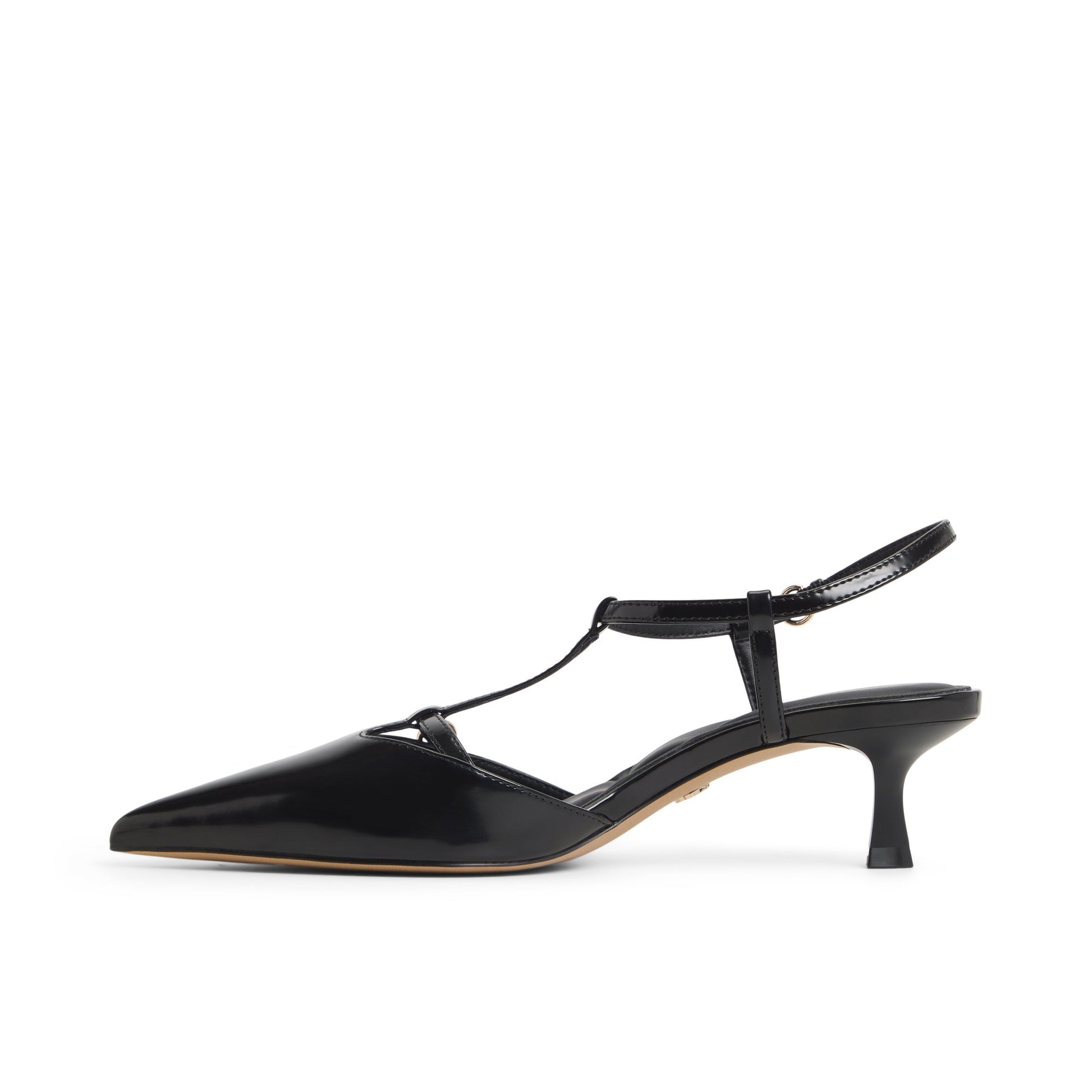 - A low-to-the-ground heel and T-strap silhouette makes this heel feel fresh, while tiny buckle details add a bit of edge.
