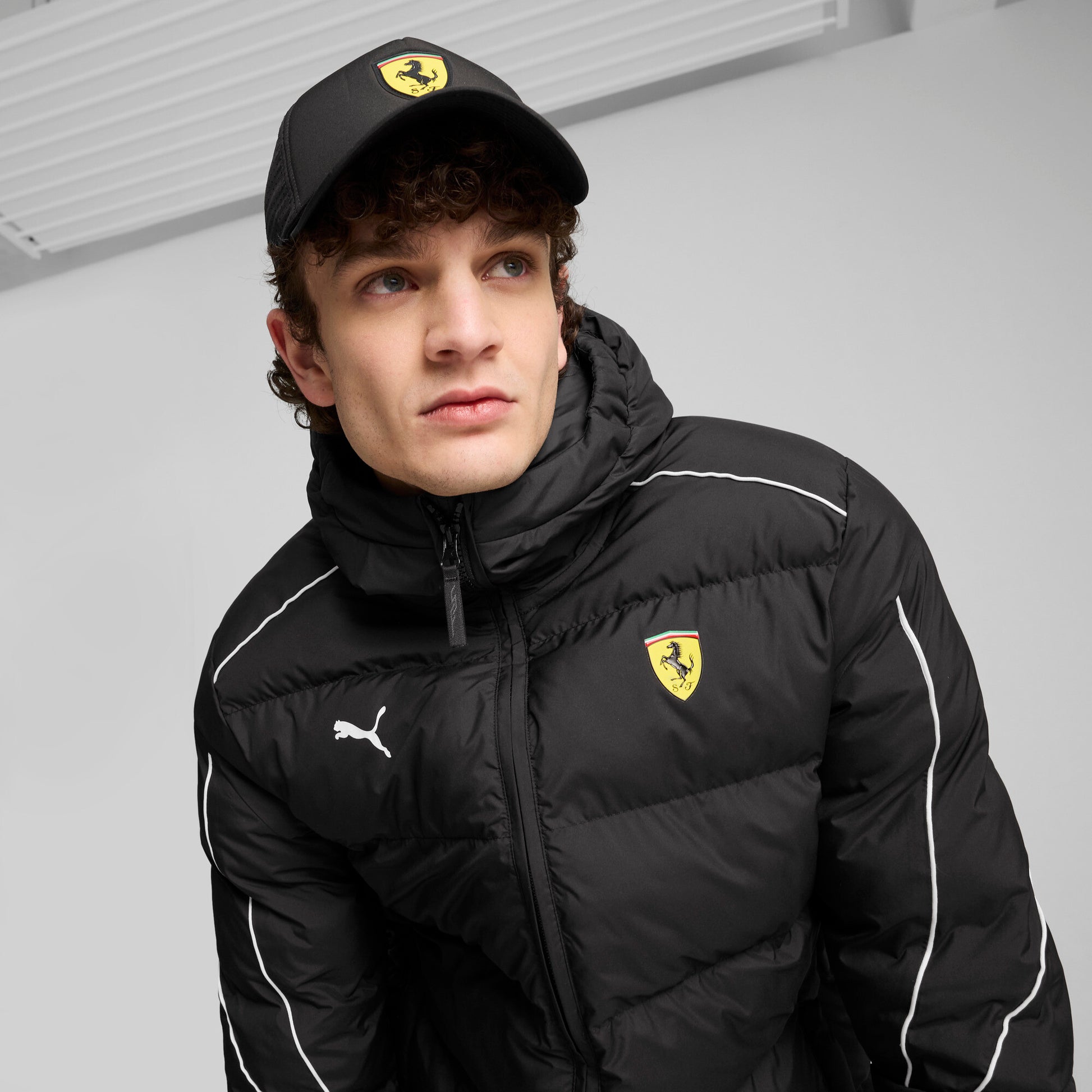 - Classic style meets Scuderia Ferrari prestige. This 5-panel trucker cap boldly displays the Prancing Horse and features a snapback closure.