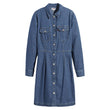 - A denim dress with timeless Levi's® style. This Ellie Denim Dress features long sleeves with adjustable cuffs, two button pockets and buttons all the way down.
