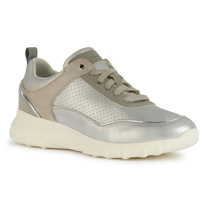 • Discover The Perfect Mix Of Style And Comfort With The Geox Alleniee Sneakers. They Shine In A Striking Combination Of Silver And Light Gray, Which Immediately Gives An Urban And Chic Look. The Delicate Balance Between The Smooth Pearl Geobuck And The Natural Softness Of Suede Not Only Promises A Visual Highlight But Also Guarantees An Excellent Fit. This Pair Makes Every Step You Take Incredibly Comfortable, Thanks To The Breathable Properties That Characterize Geox Shoes.