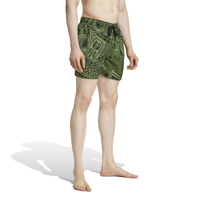 - Adidas Farm 3 Stripes Swim Shorts. These 5-Inch Shorts, Made In Part With Recycled Materials, Are Designed For Both Style And Sustainability. With Water Repellent Properties And Easy Care Fabric, They Ensure Flawless Appearance After Each Wash And Dry. The Vibrant Farm Graphic And Inner Brief Add To Their Appeal, Making Them A Perfect Choice For Any Swimming Occasion.